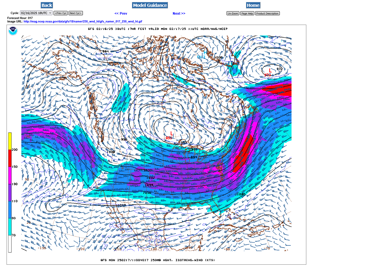 This is the 250 mb map, which is over 30,000 feet up. This is almost at the level that commercial jets fly at!