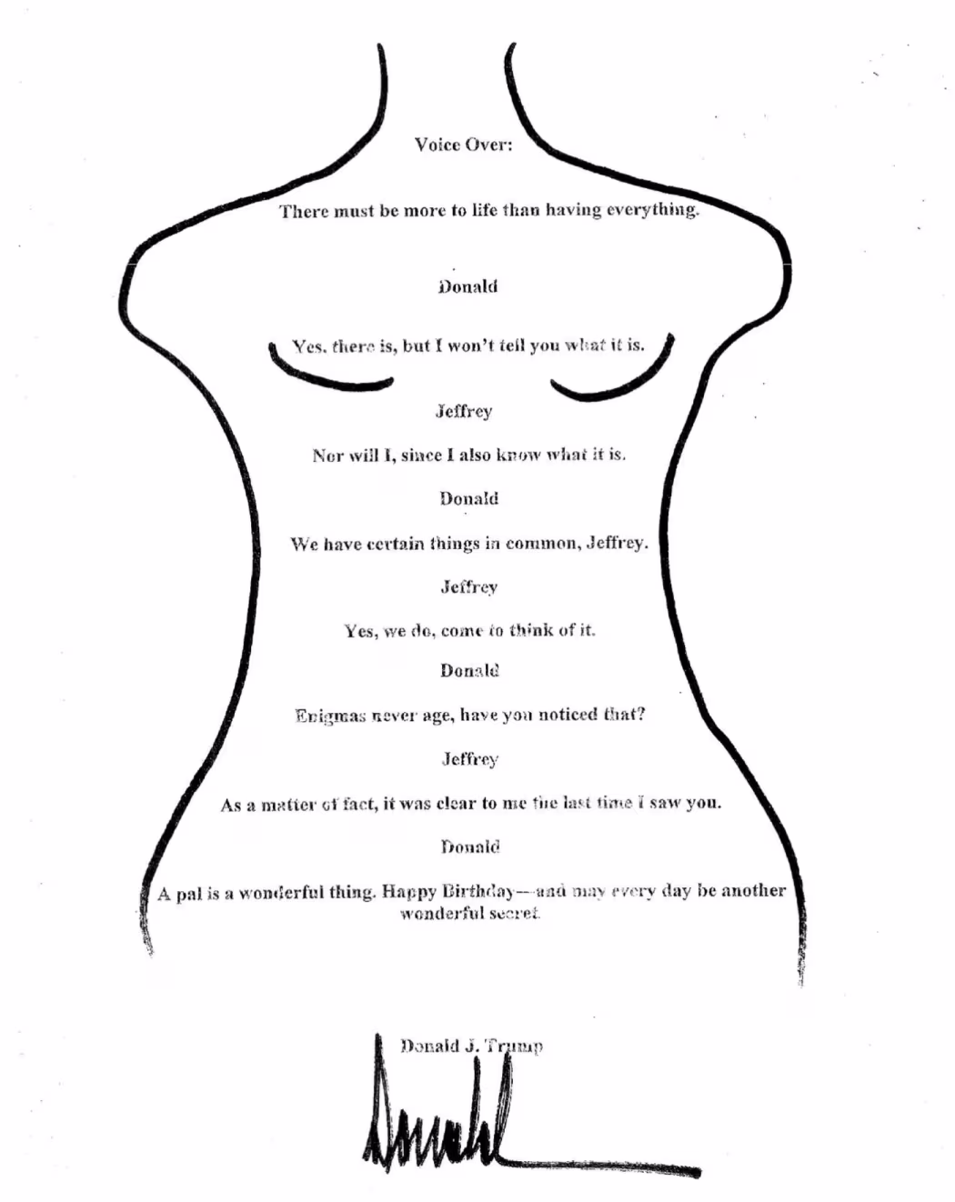 But let's just game this out for a second: According to the president and his allies, 22 years ago, when Trump was still a Democratsending checks to Hillary Clinton; when Trump and Epstein were still friends who partied openly together at Mar-a-Lago,and before the millionaire pedophile’s crimes became known to the public, someone out there had the foresight to fake Trump’s signature and then include it in a book to his close friend, in the hopes that it would damage his reputation when he was miraculously sitting in the Oval Office 22 years later?