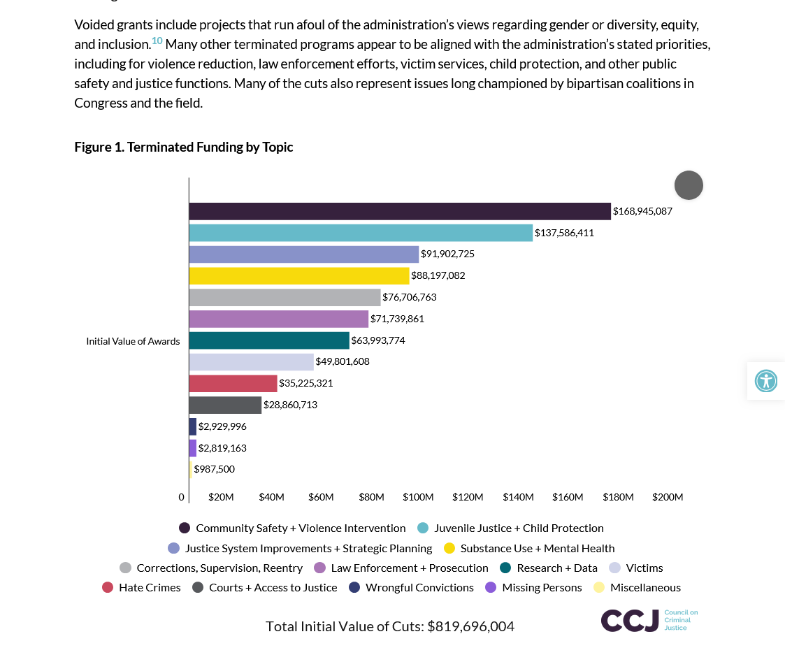 • $1 billion across 40 Department of Justice (DOJ) grant programs which support