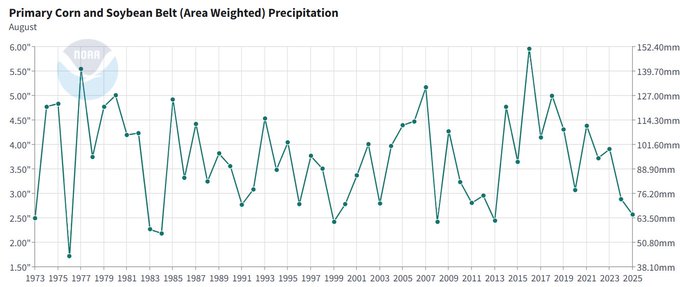2025 marked the driest August across the U.S. corn and soybean belt since 2013.
