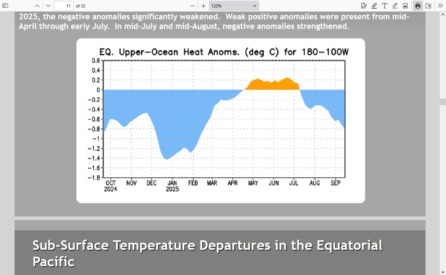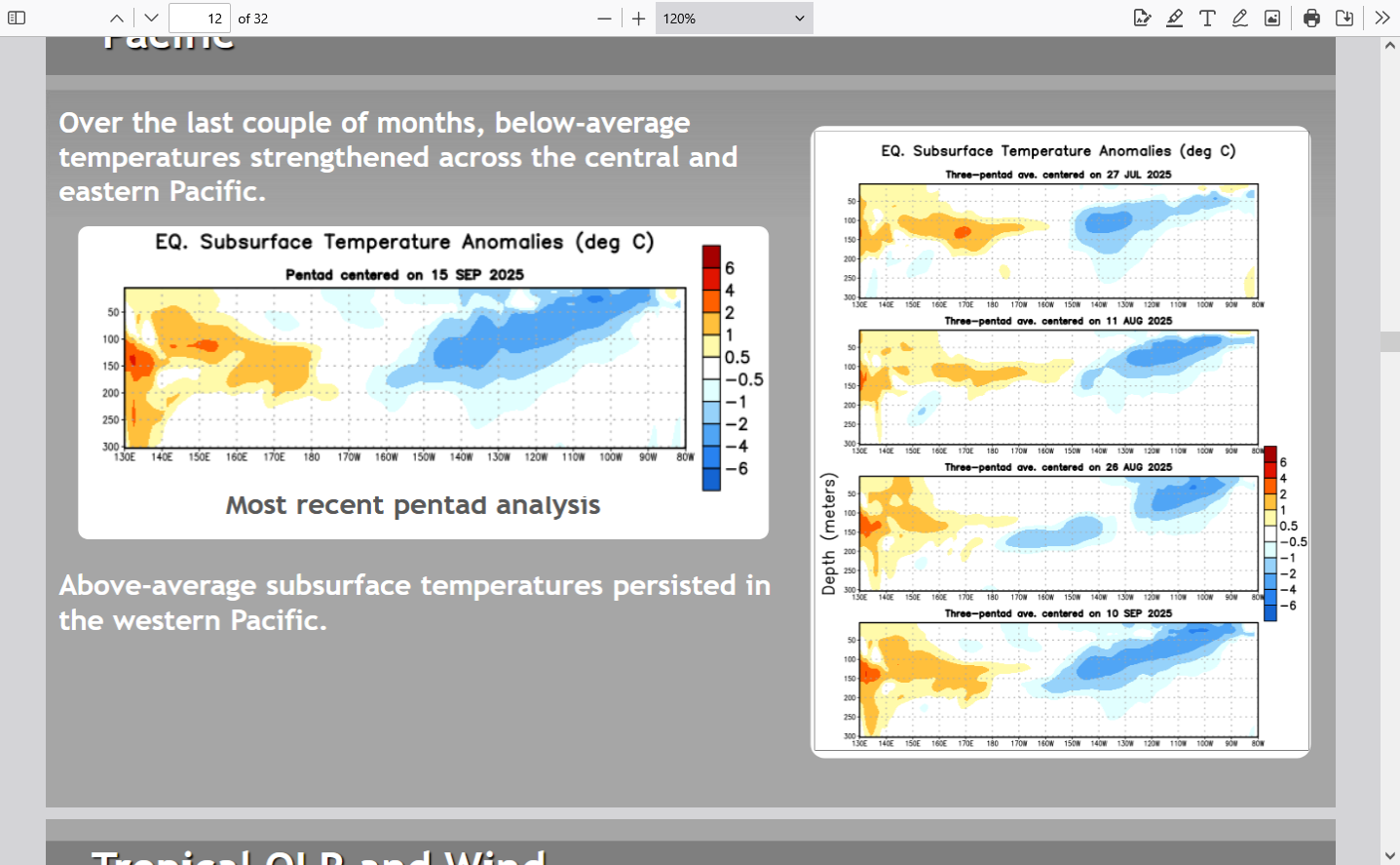 The atmosphere is already in a weak La Nina mode. The official La Nina is a lagging indicator.