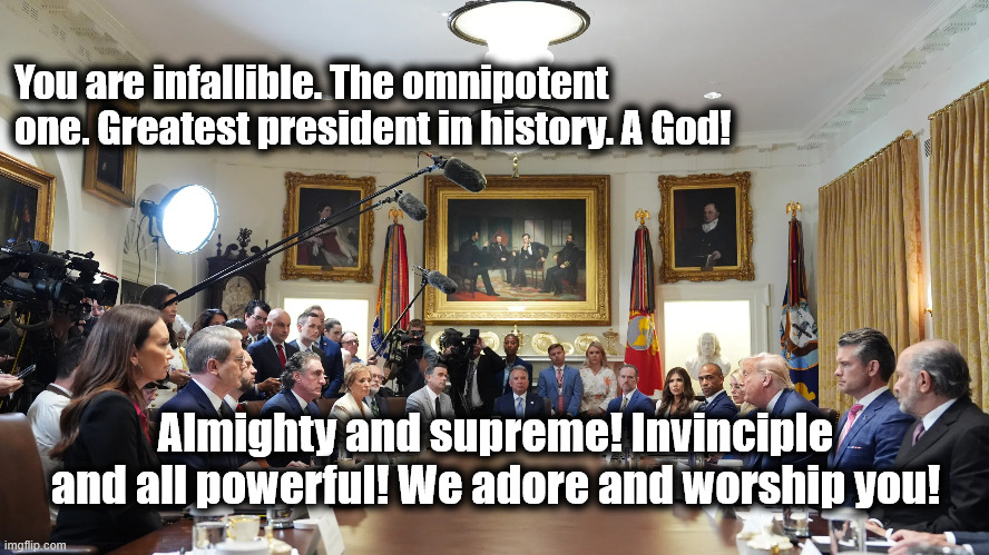 Then he fills all positions with people that he knows will have their #1 priority being this: Fulfill all of Donald Trumps wishes, never disagree with him and constantly tell the world how great Donald Trump is.