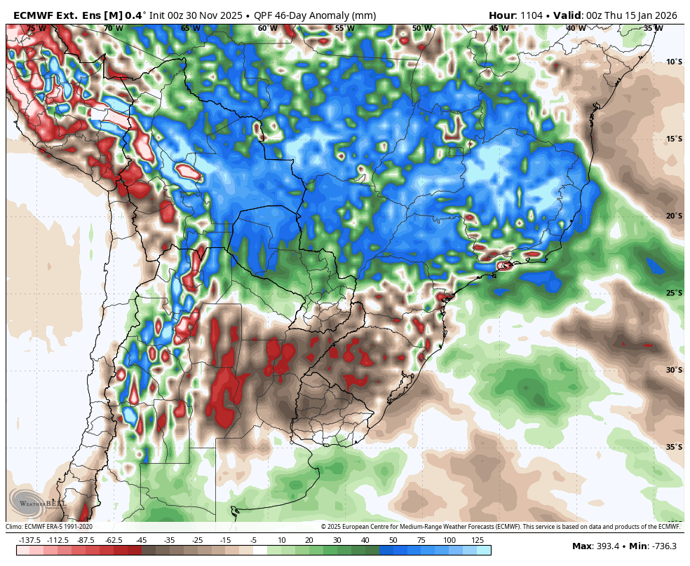 This was the longer range, 46 day forecast. Tons of rain for #1 producer Mineas Gerais.