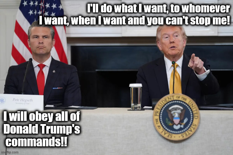 Again there is nobody holding him accountable to any facts. He just blows up boats with human beings on board (planning to do it on land next) in the Western Hemisphere because he is the most powerful man on the planet with the most powerful military on the planet and he tells us that he has the right to do it for whatever reason he uses to justify it and it's supposed to be ok.