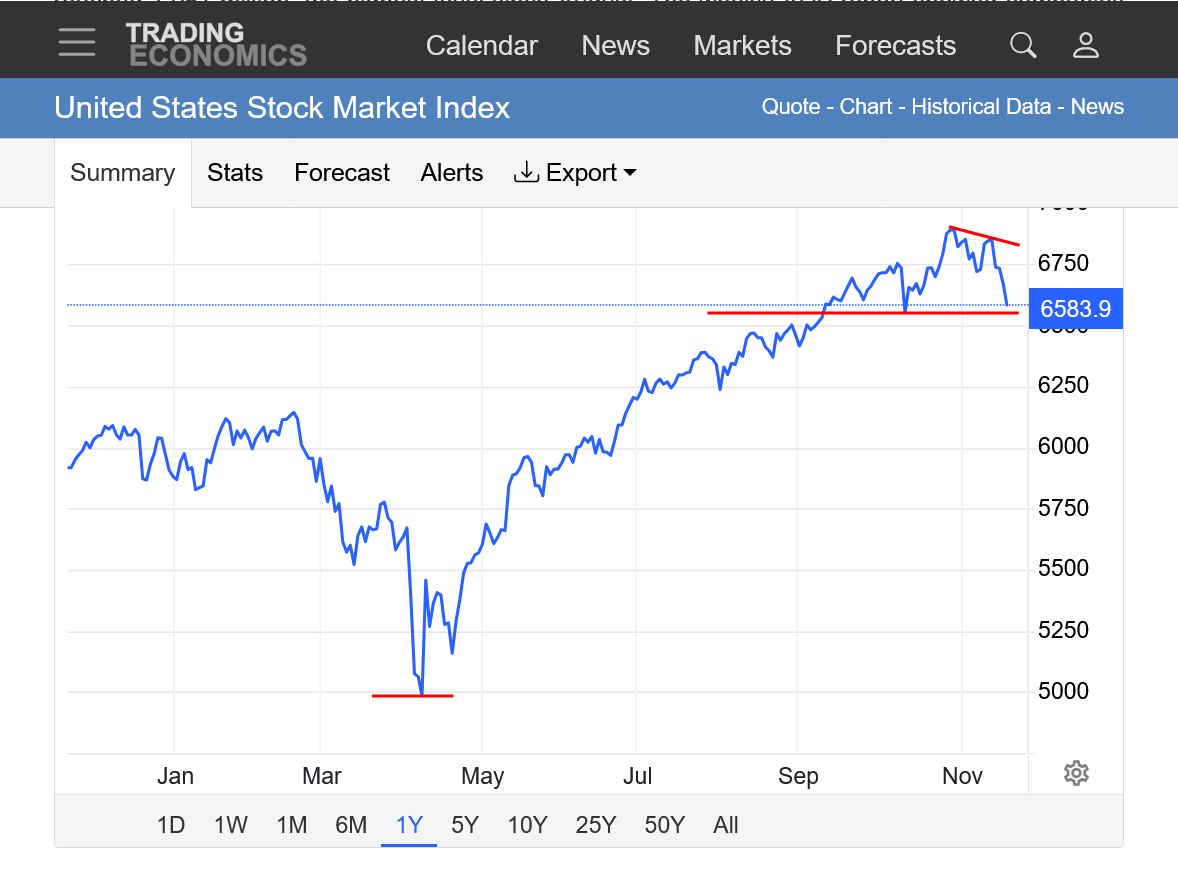 Maybe Trump bragging about how he's caused the stock market to make 49 highs this year on Wednesday evening, including yesterday(according to him) was the kiss of death