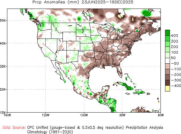 More typical of an El Nino year, with the rains going this far south but this will help refill reservoirs, dams, lakes and rivers while dumping mountain snows that will melt in the Spring/Summer and provide water during the dry season.