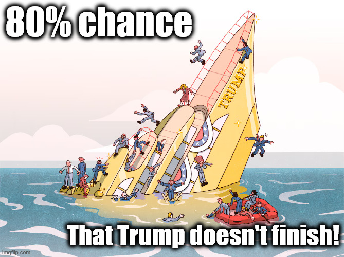 After gaining additional discernment while doing that, I will guess that there's an 80% chance that Donald Trump will NOT finish this term.'