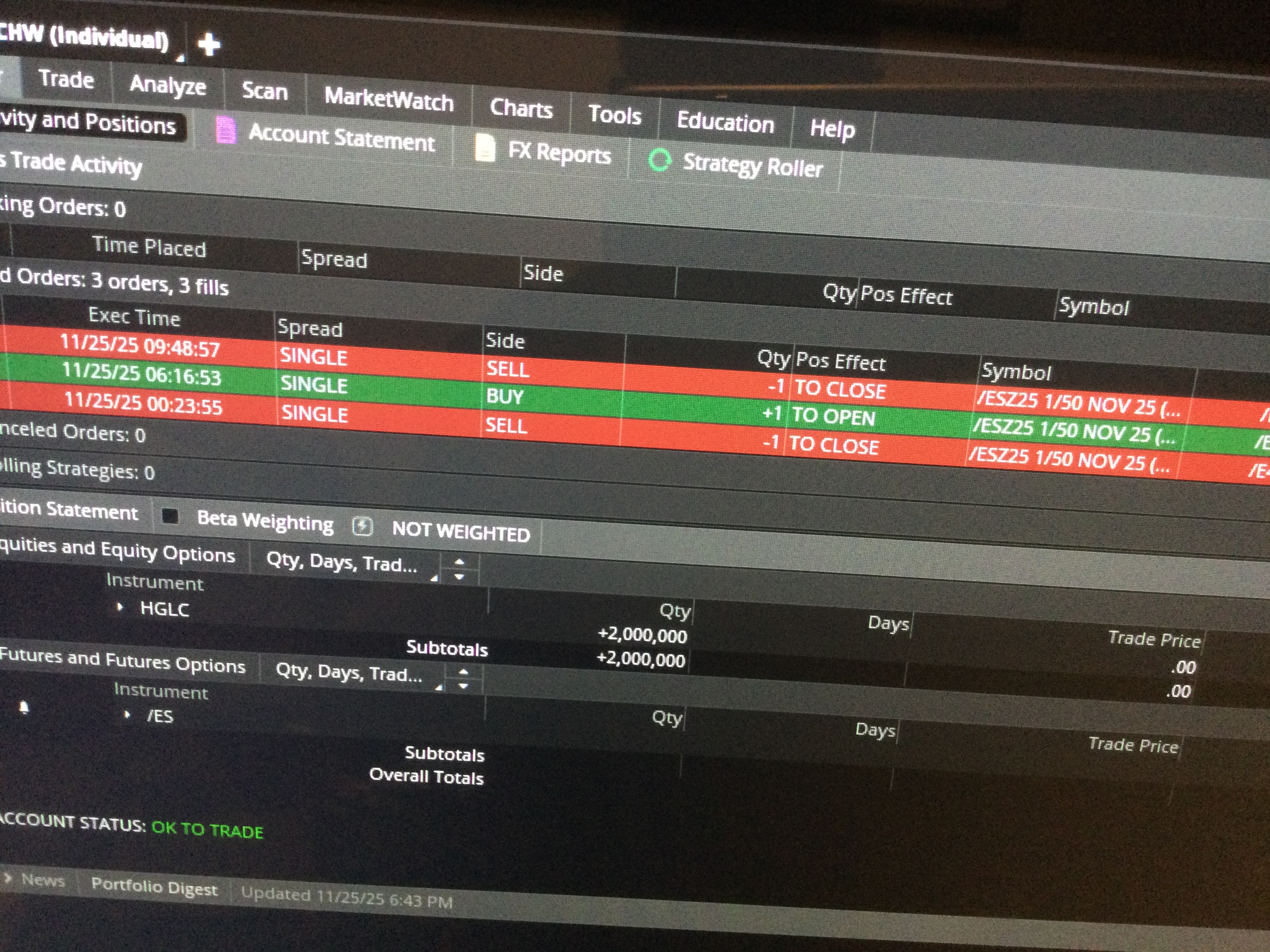 Yes,this account has lost money because its the account that I set up to teach a co-worker. She is learning to trade with the Micros e-mini. I did an option trade to bring the funds up! Aren't I a god boss?