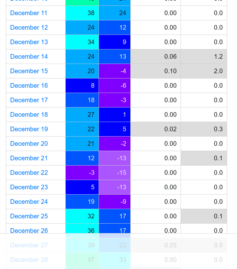 Adding to the extra chill is an unusually extensive snowpack for early December. This is keeps it cool in several ways.
