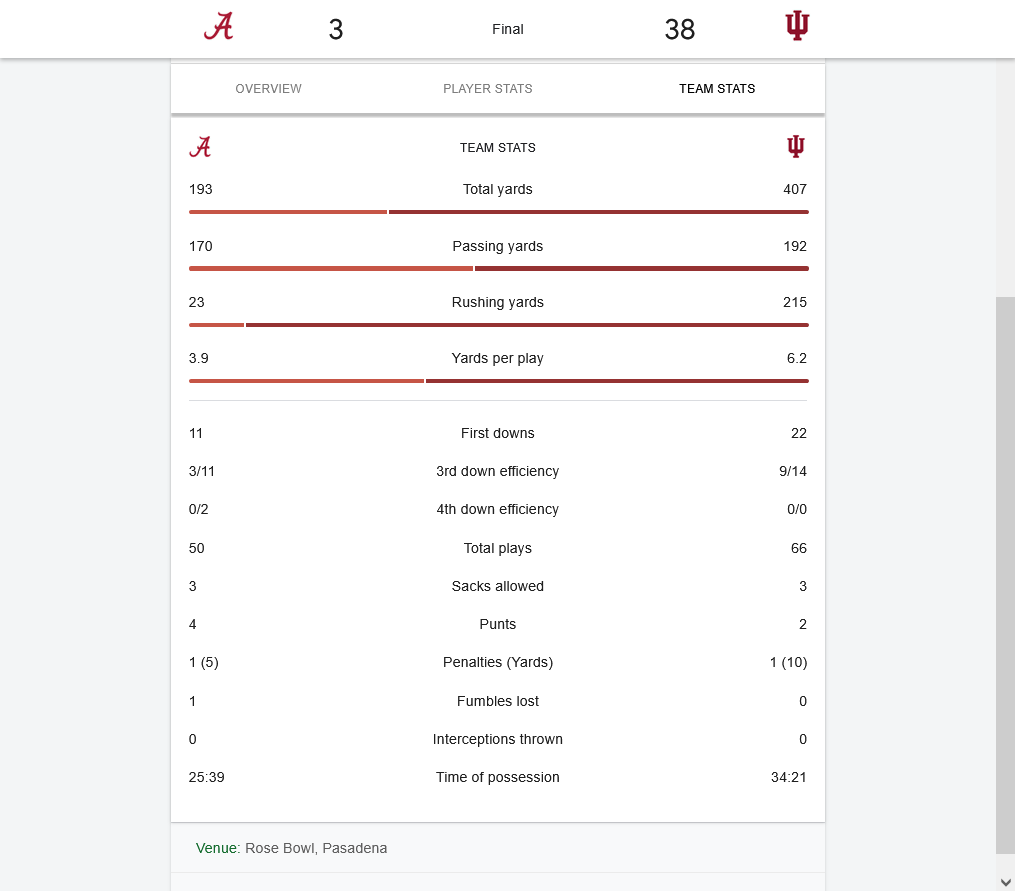 Congrats to IU on their convincing win over AL at yesterdays Rose Bowl!