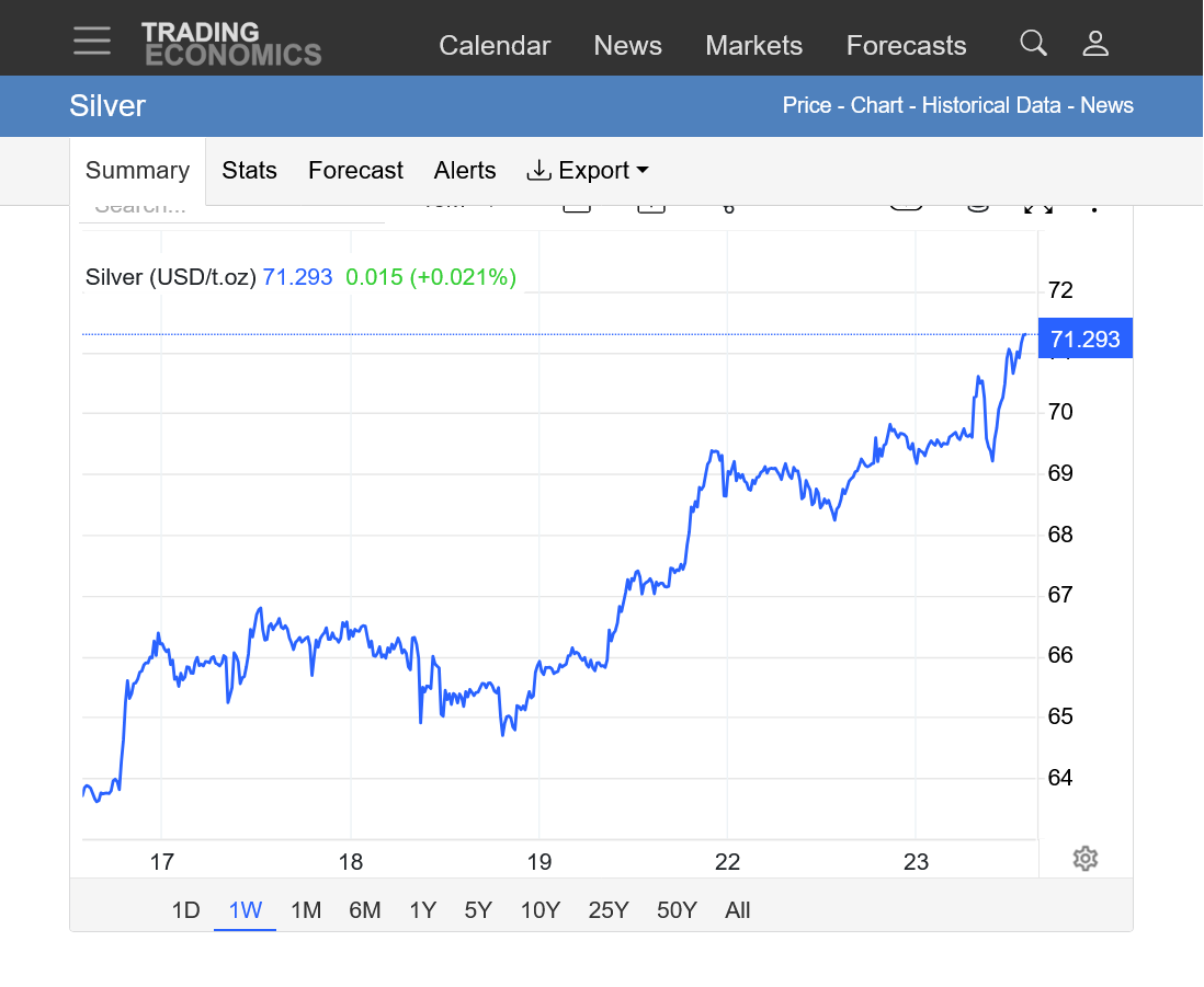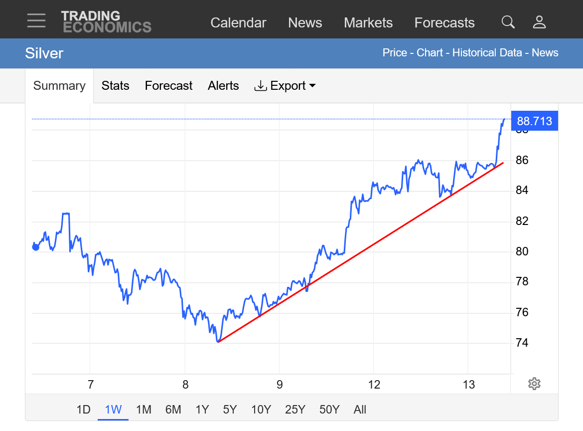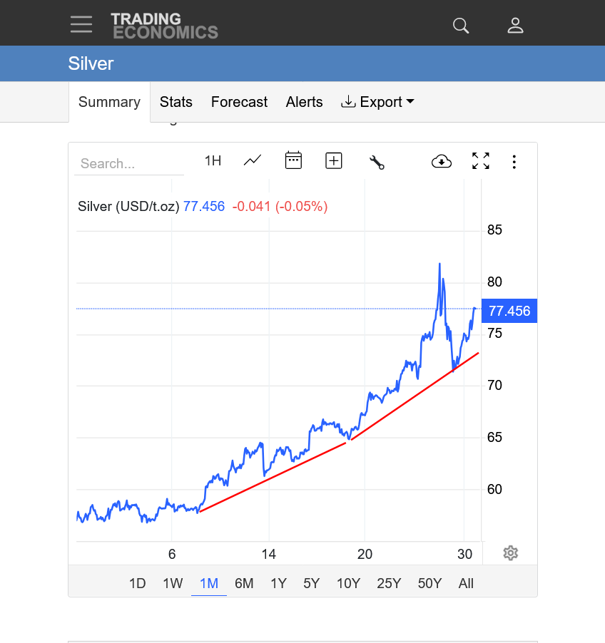 3. 1 month: Steepening upslope. Silver up 50% in just a month.