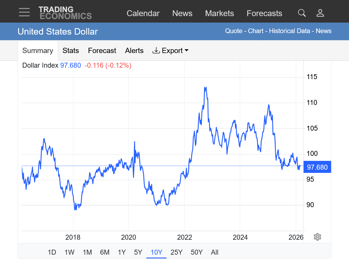So the price that our risk taking producers get goes UP from $10 to let's say.......$10.50/bushel as the rest of the world is paying something like $9.50/bushel from the US dollar discount.