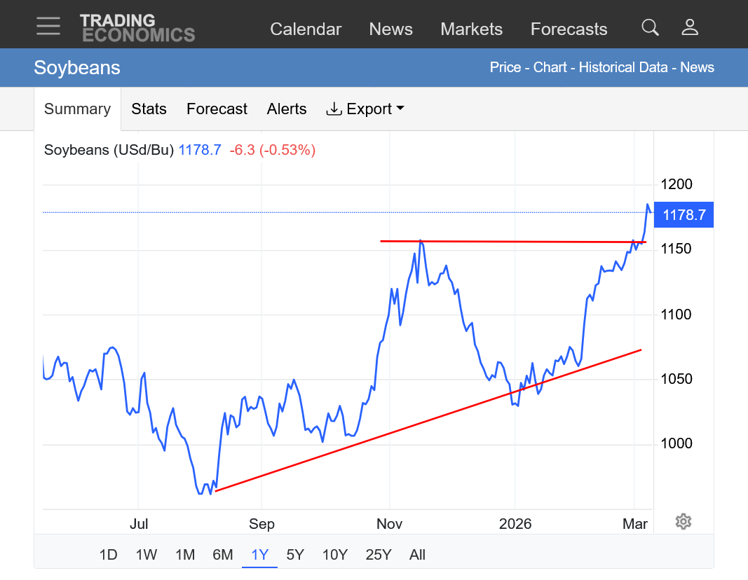 Still bullish Argentina weather. Possibly too much rain in S.Brazil.