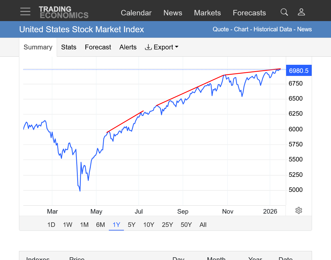 But here's the thing this time. THIS time is different. Donald Trump's progressive dementia and positive reinforcements/enabling from Congress, MAGA, Fox News and others have encouraged him to get away with more and more but THIS time, he went way too far. There is no hiding it now. The entire world just got a very close look into the mind of a deranged, Megalomaniac that is obsessed with conquest. That includes the rich and powerful people in the stock market who can't possibly have confidence in him anymore. They must also be dialing in the very high chances that Donald Trump will be removed from office before the end of his term.
