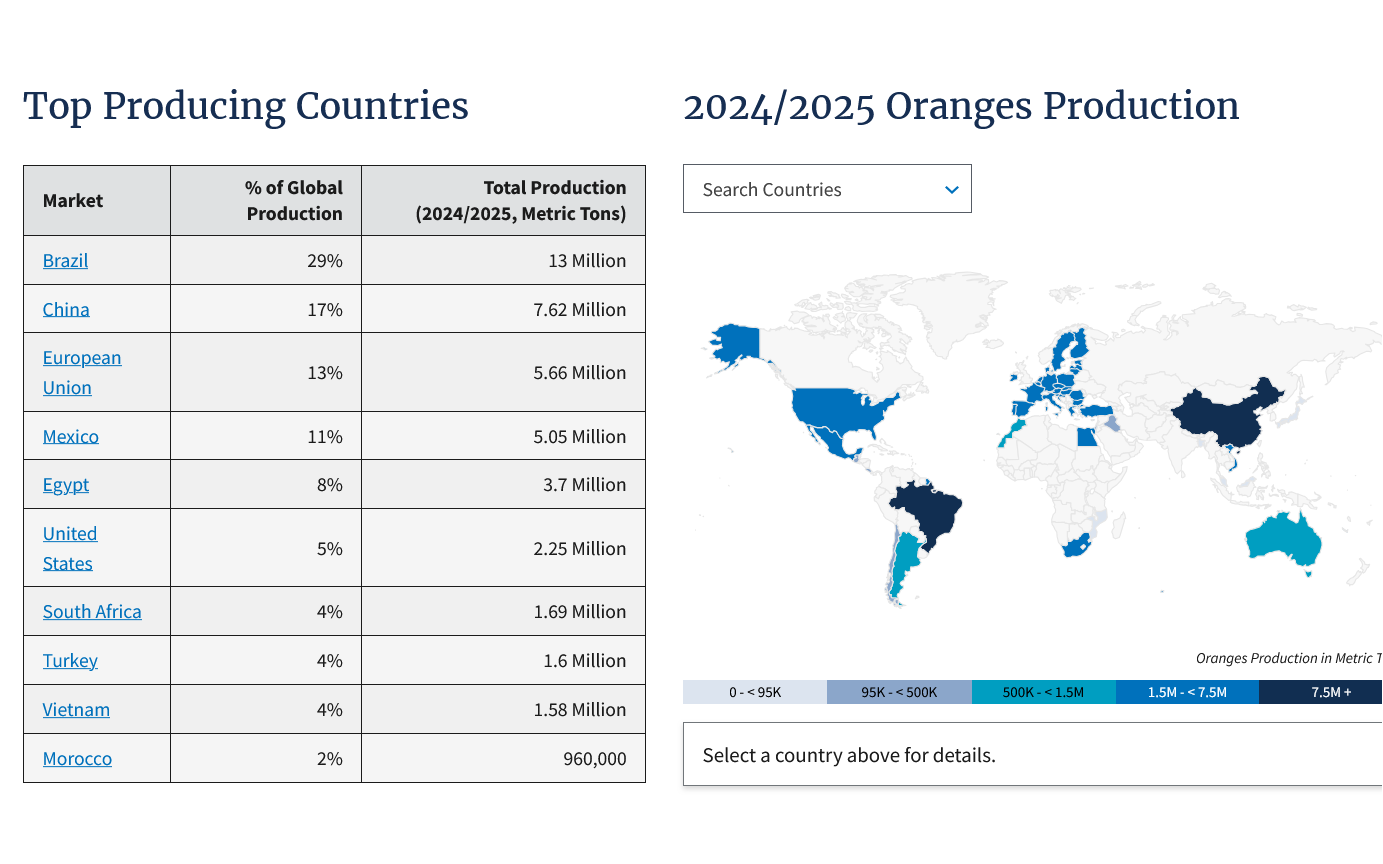 3. Sao Paolo, Brazil produces the most of any country in the world for oranges now.