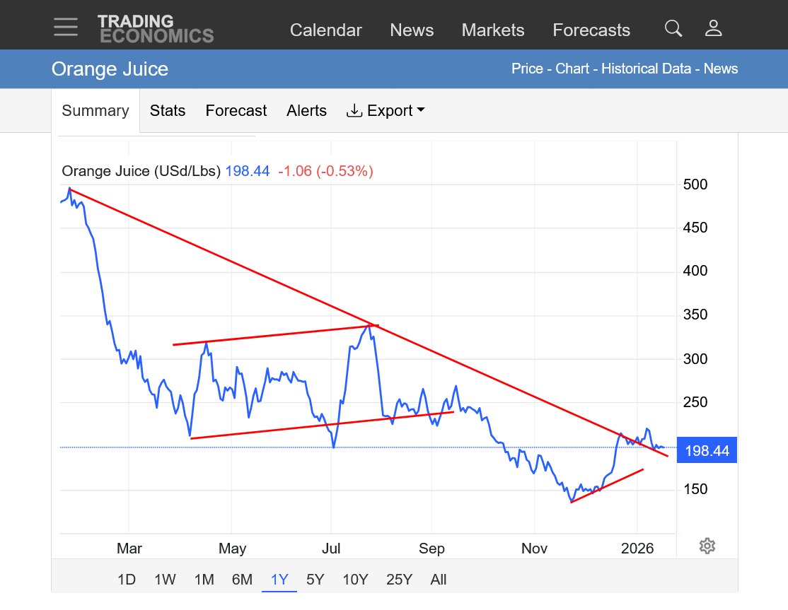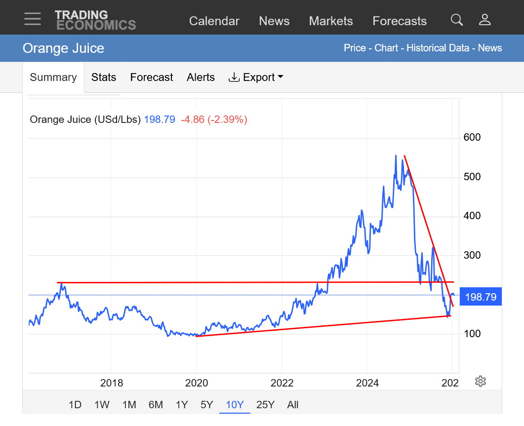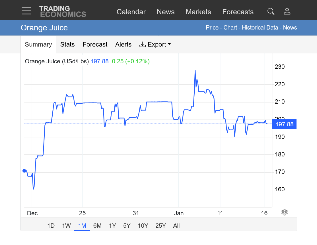 2. Almost as importantly, citrus greening in FL has killed off most of the production.