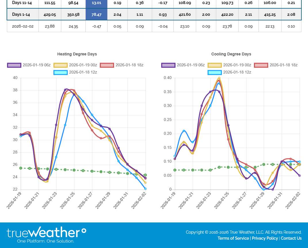 Over the weekend, HDDs increased in the forecast because the magnitude of the cold blast late in week 1 is GREATER.