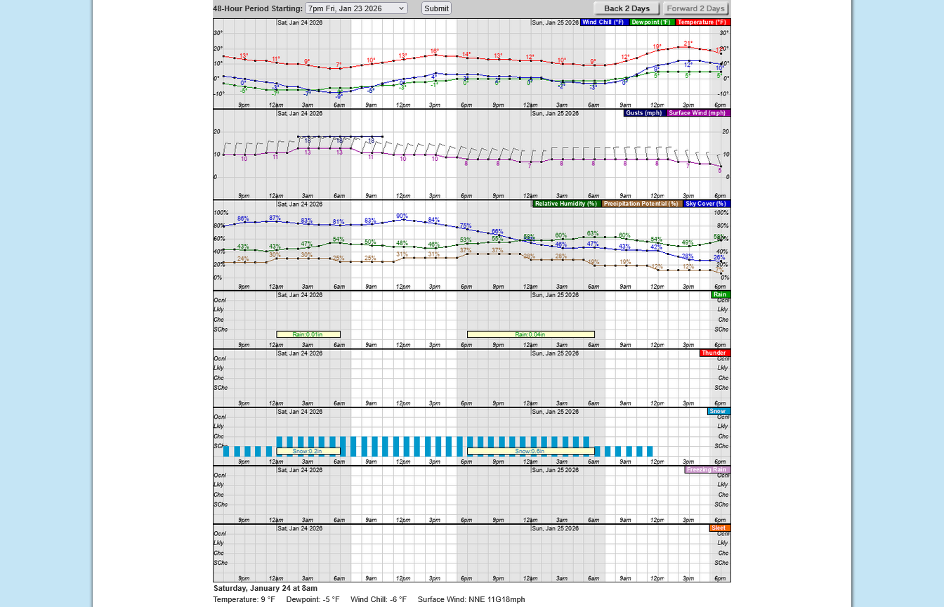 The latest NWS numerical guidance(AI) is up to a total of 10.8 inches of snow falling! Winds are much less on Saturday so the blowing won't be terribly bad, even though this snow will be very fluffy.