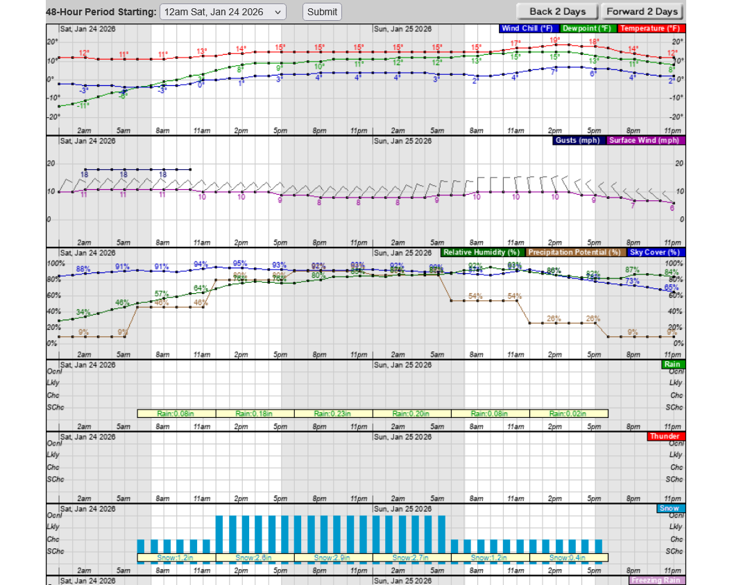 It may start as early as Saturday morning. This will be a very long duration event, not diminishing until Sunday afternoon. The latest guidance has me thinking it could last well into the afternoon Sunday.