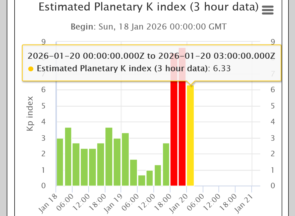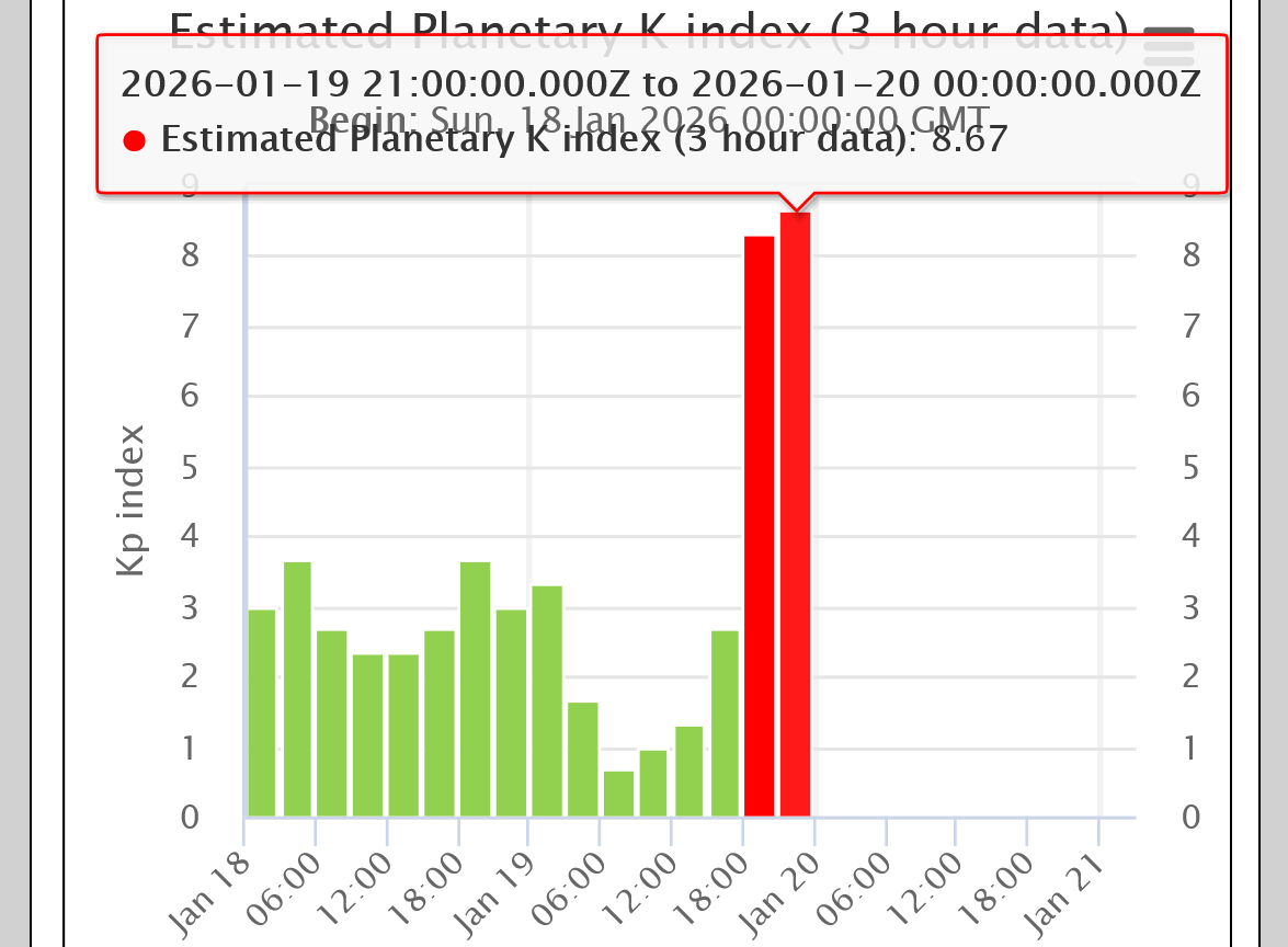The K index is way up there right now so we might be able to see the Northern Lights in Evansville.