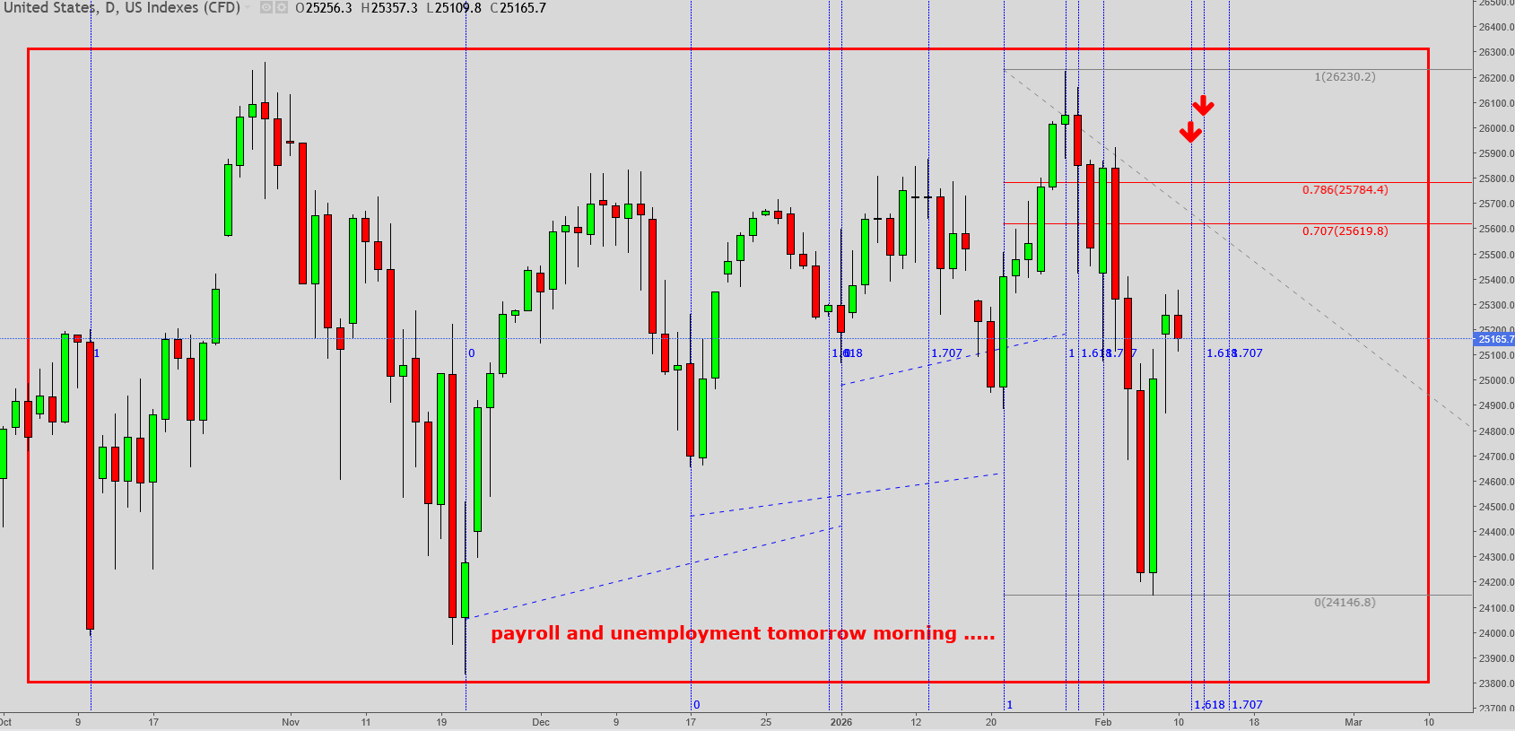 Other indexes DOW and ES may go a bit higher still since the DOW set a new high recently .