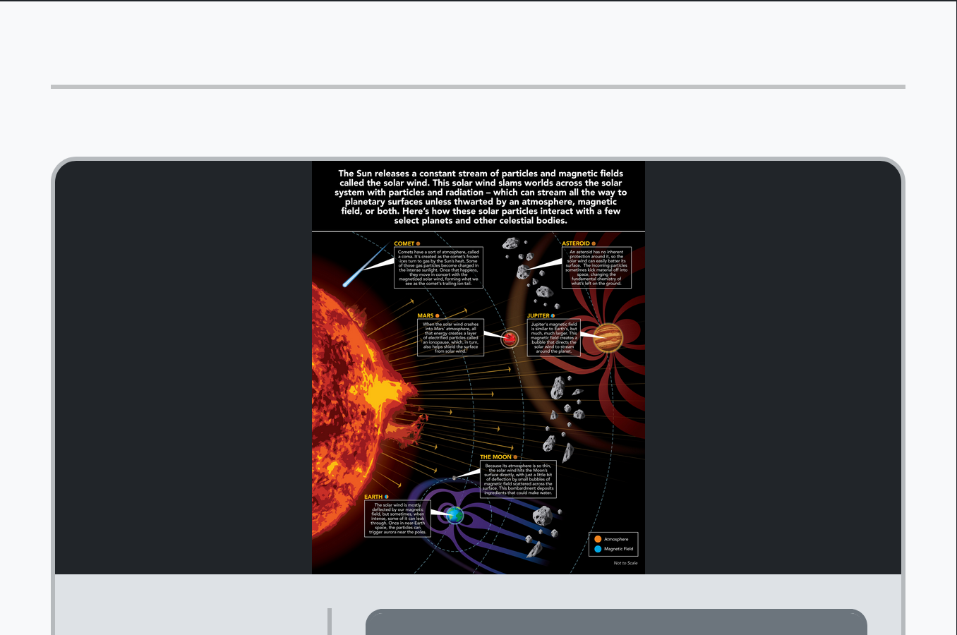 The Sun releases a constant stream of particles and magnetic fields called the solar wind. This solar wind slams worlds across the solar system with particles and radiation -- which can stream all the way to planetary surfaces unless thwarted by an atmosphere, magnetic field, or both. Here's how these solar particles interact with a few select planets and other celestial bodies.
