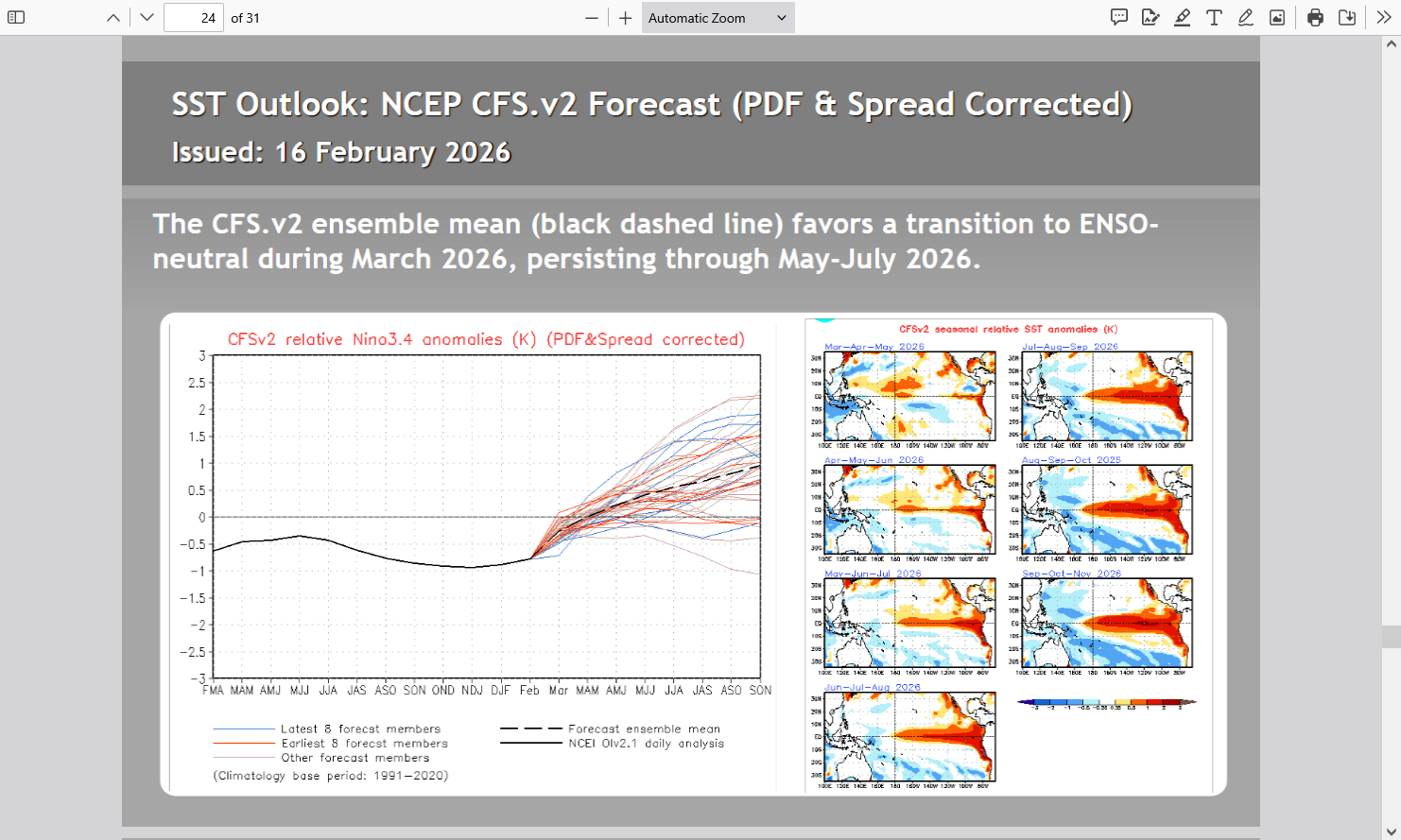 2-17-26: This La Nina has weakened the fastest ever with Pacific water temperatures really warming fast now. We should assume that means El Nino conditions and analogs should be adjusted accordingly. For instance, the current forecast for El Nino by late Summer should be MOVED UP. In fact, considering the lag time issue mentioned above, I would move up the El Nino impact to THIS SPRING with regards to real world, empirical data based weather condition analogs.