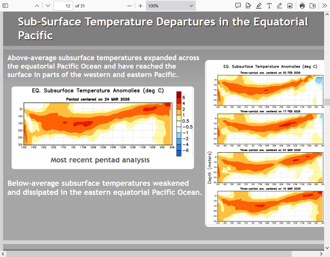 But it's April 2nd and the atmosphere isn't waiting around for NOAA to tell it that we have an El Nino when ocean temperatures have already crossed the threshold. And even that threshold is not a magical mystery boundary which acts like flipping a switch.