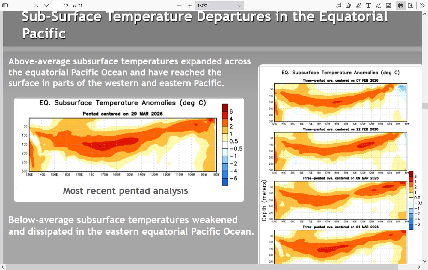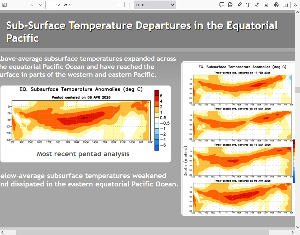 I’ll have the update when back in my office. The subsurface warmth continues to build big time with the +6 Deg. C contour growing. When that extremely water naturally comes to the surface, it means a robust El Niño in short order and maybe a SUPER El Niño later this year!