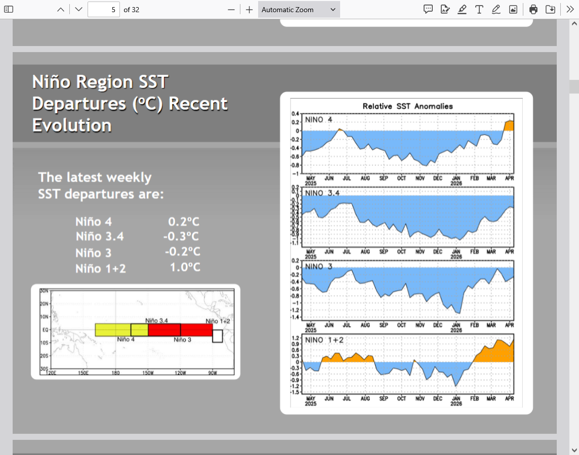 This is my forecast right now, in fact, El Nino by AMJ is possible.
