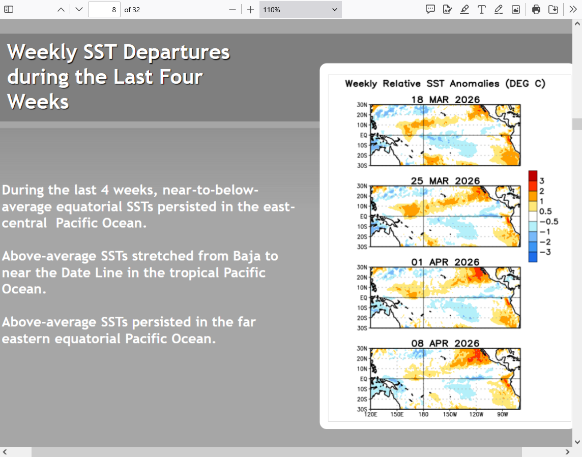 I have high confidence (for a longer range forecast) that this rapidly developing El Nino will already be impacting the weather in the US early in the growing season.