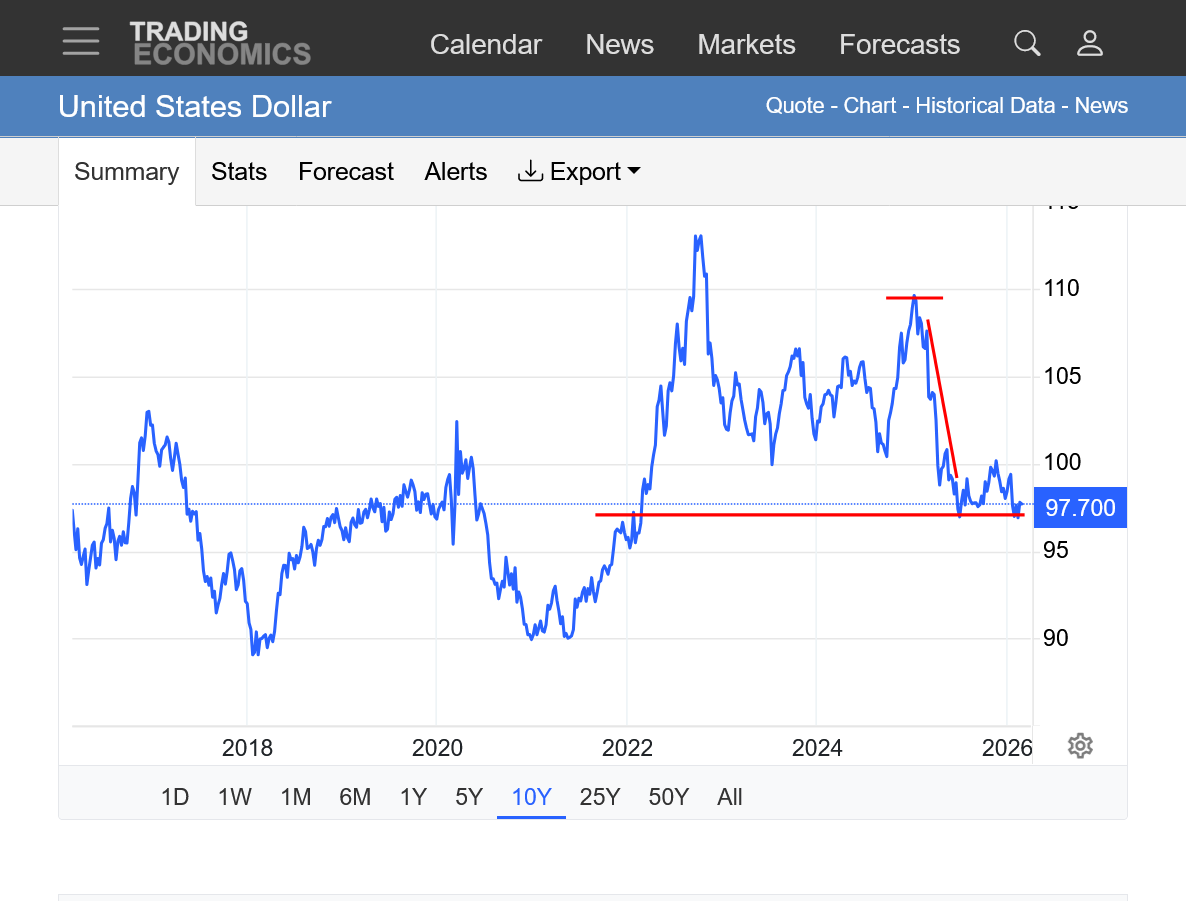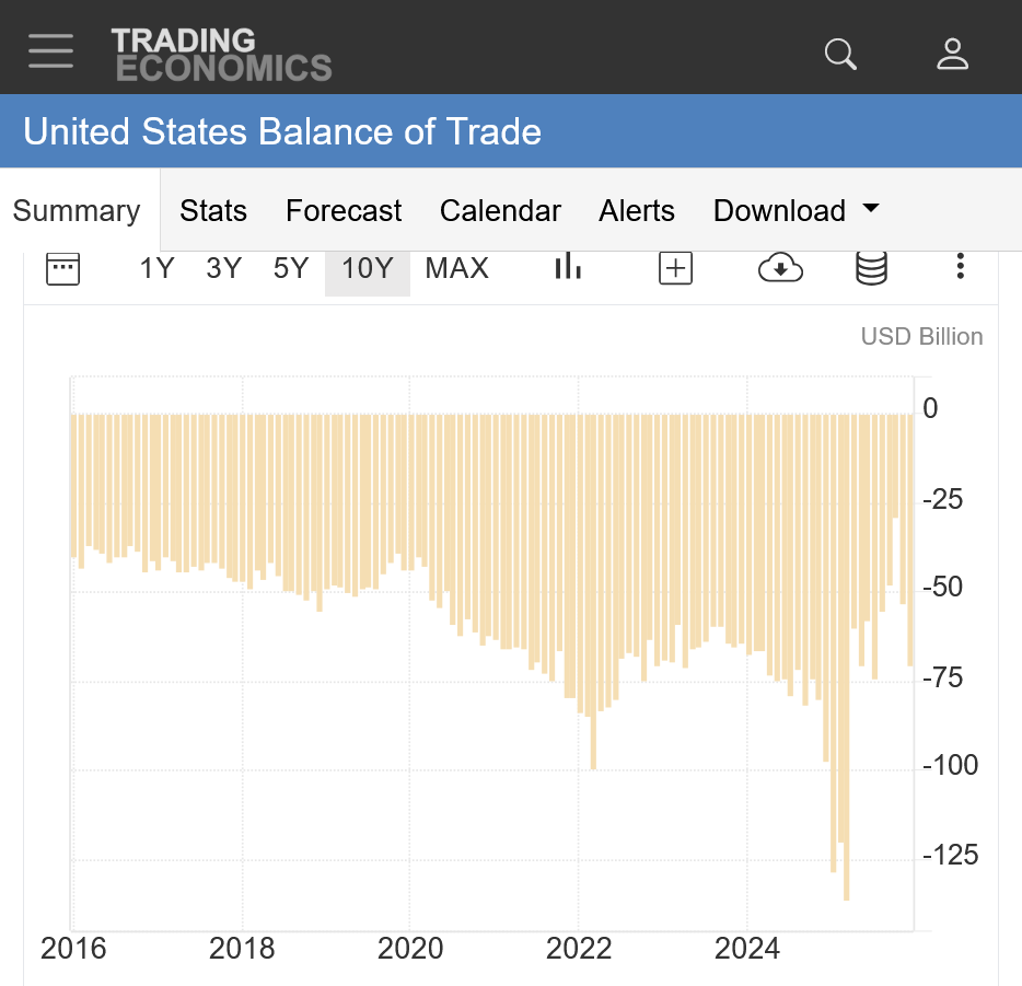 However, considering that the US Dollar dropped over 10% from its high around when Trump was inaugurated in January 2025(now the lowest in 4 years), which made our goods/exports 10% cheaper and foreign goods/imports 10% more expensive, in the absence of that, the 2025 trade imbalance would have been much worse and clearly, there was no significant change in the trade imbalance from tariffs.