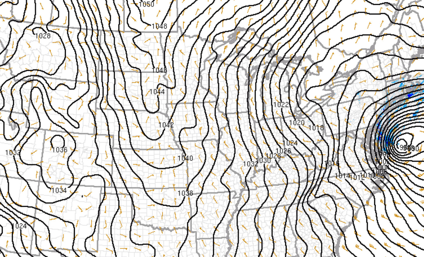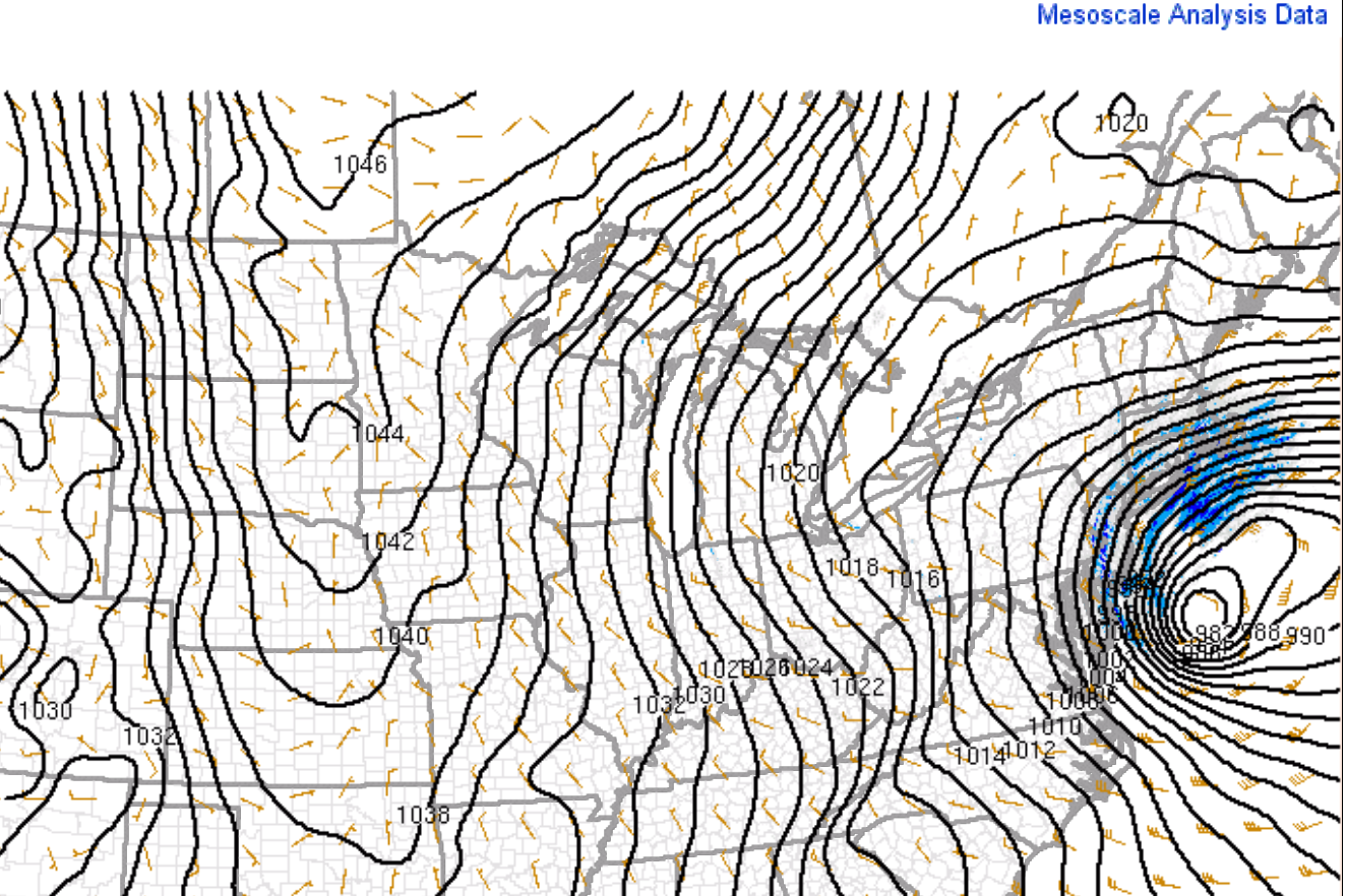 Surface map/isobars(lines of equal pressure) below: