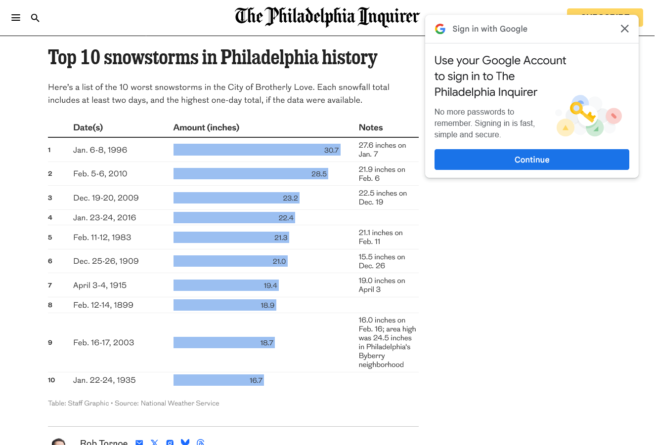 Here are the heaviest recorded snowfalls in Philadelphia history: