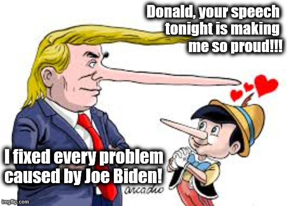 On actual content, he gets an F grade. I could have created many dozens of Pinocchio cartoons featuring a different lie each time. The biggest shocker would have been for Donald Trump to tell the truth for 5 minutes straight,(on his agenda) let alone 2 hours.