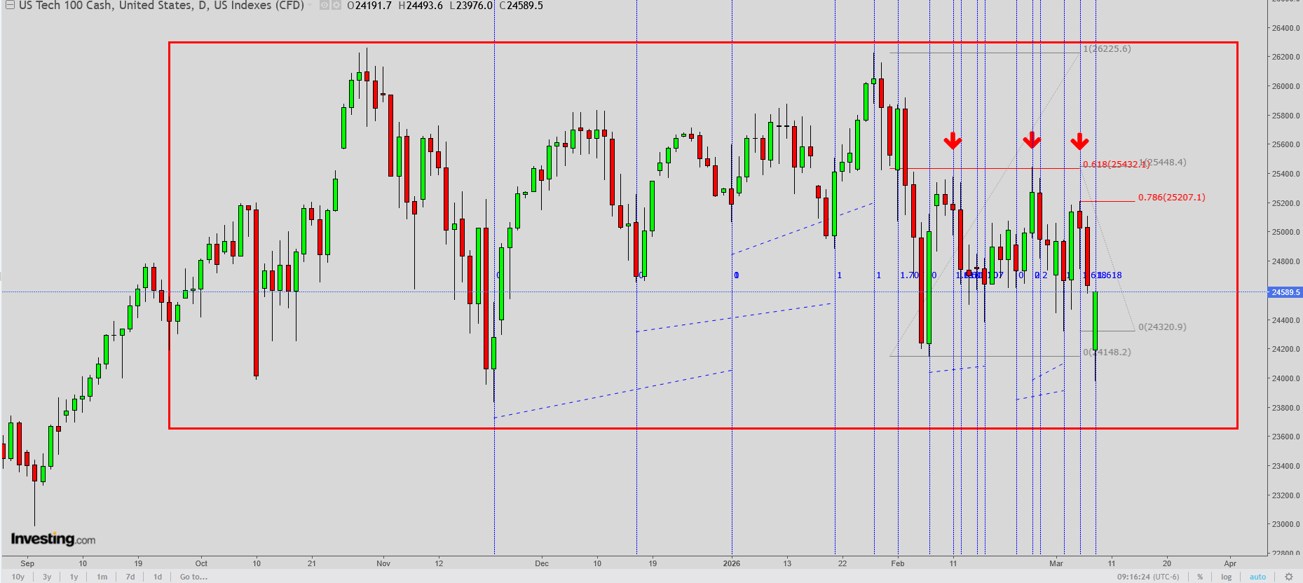 If the market manages to break and hold above 7070 on a daily closing basis, the next upside projection comes near the 7450 region. However, that zone could act as a major turning point. From that area, there is a strong possibility of a significant decline developing, with downside risk extending back toward the 6200 range, potentially around June 2026.