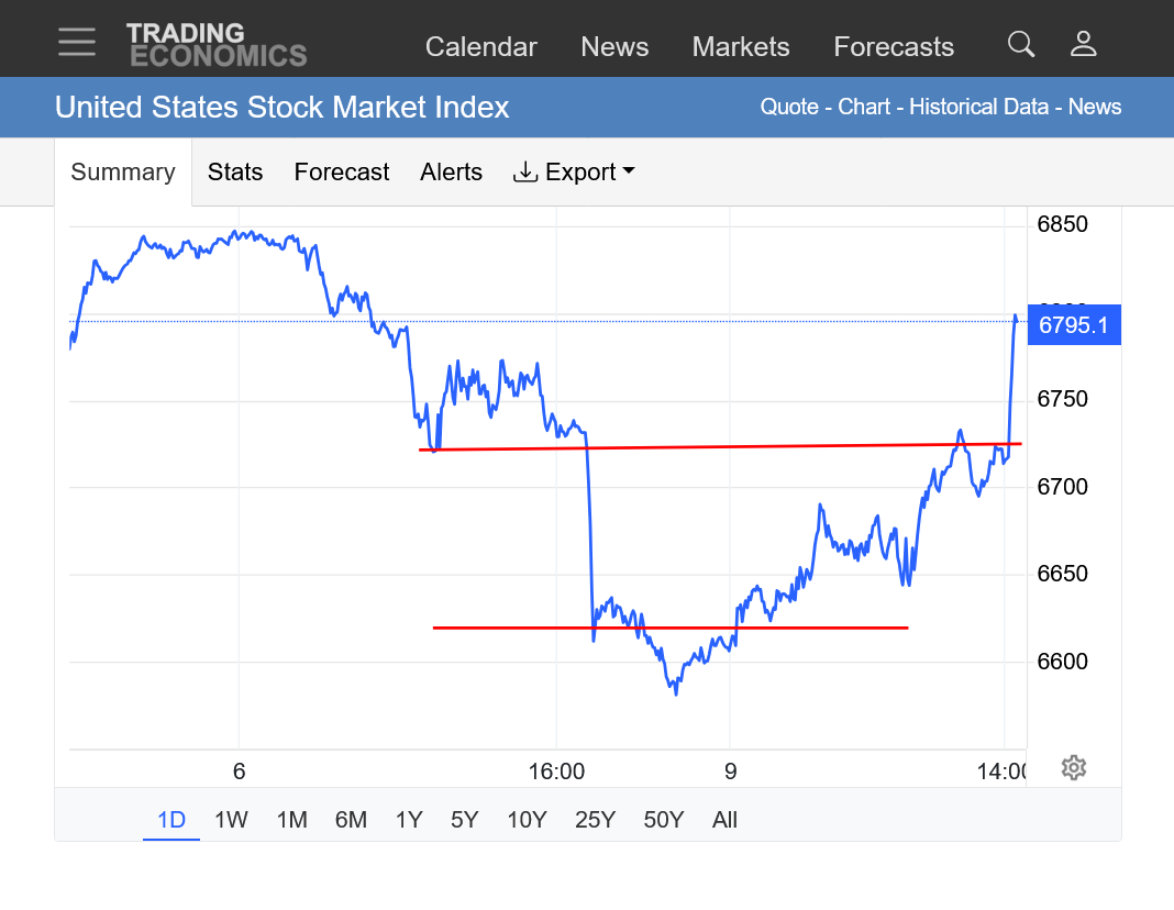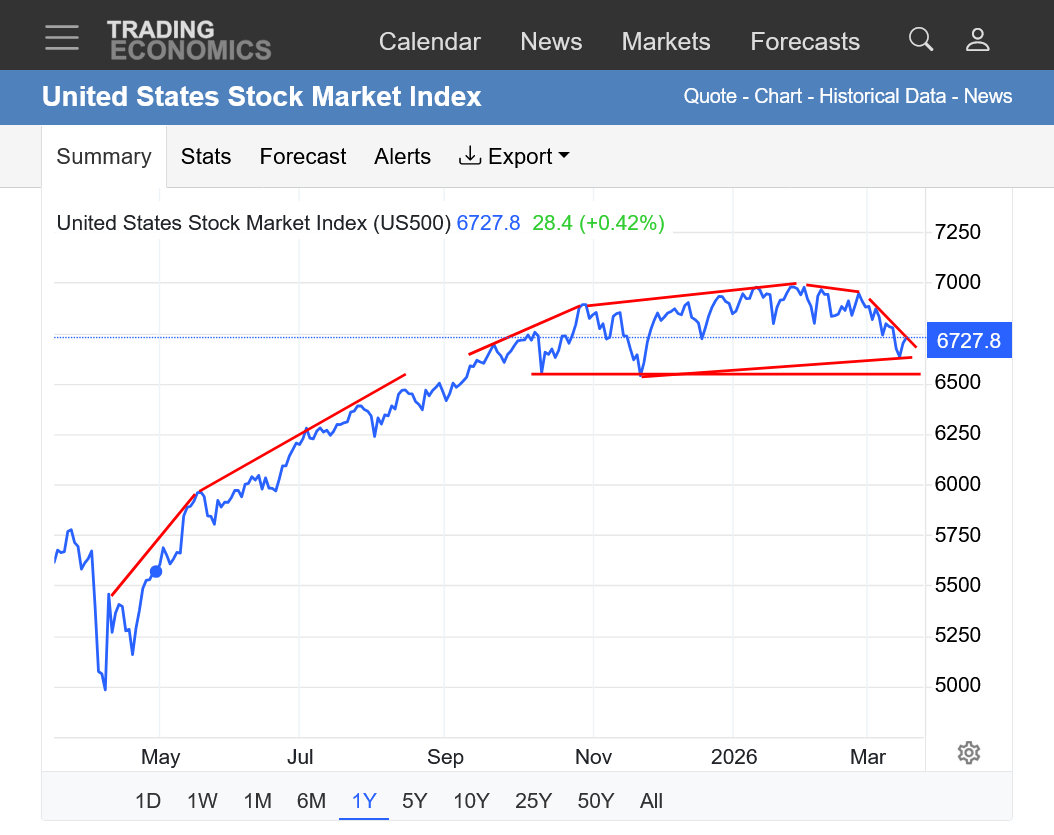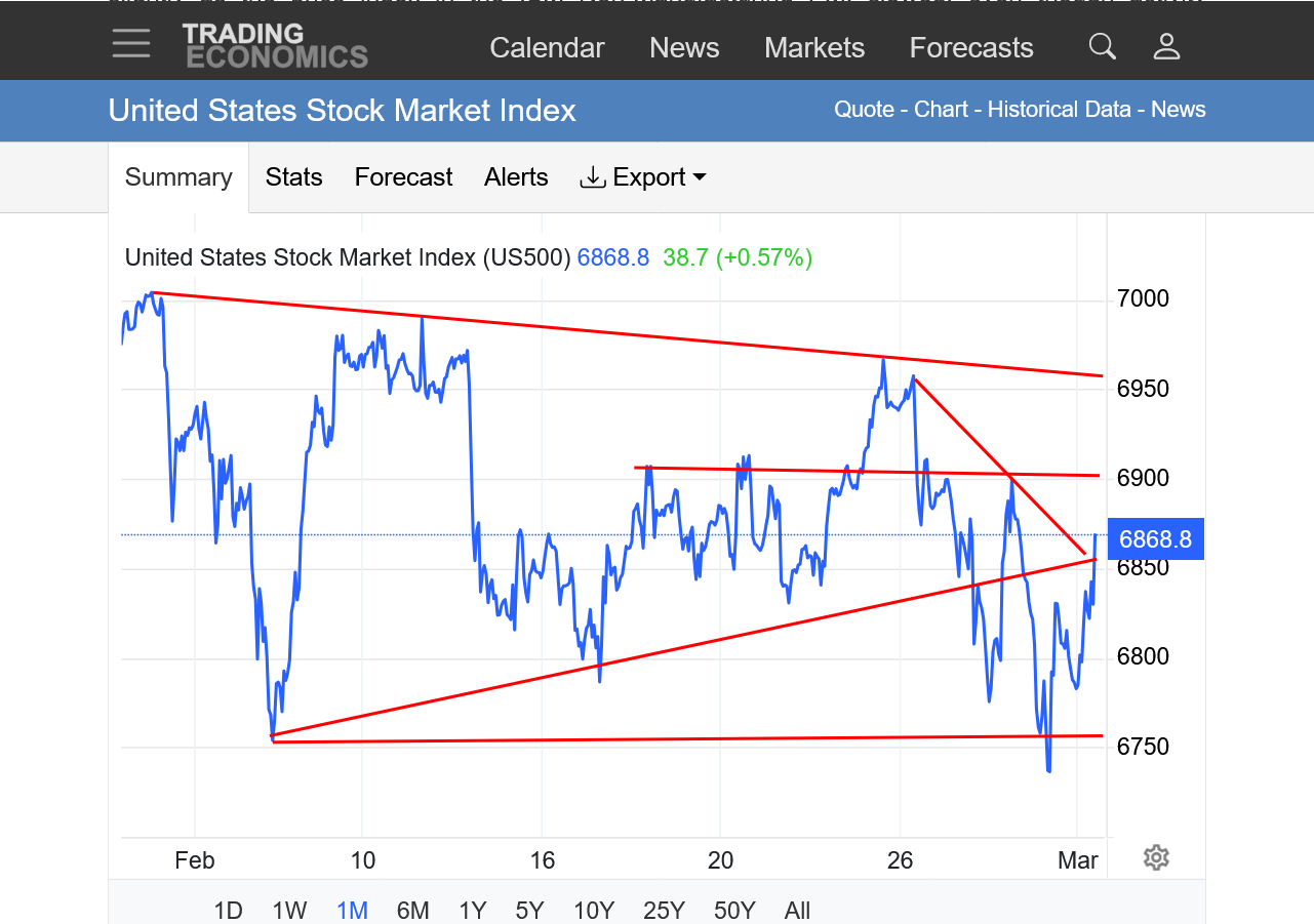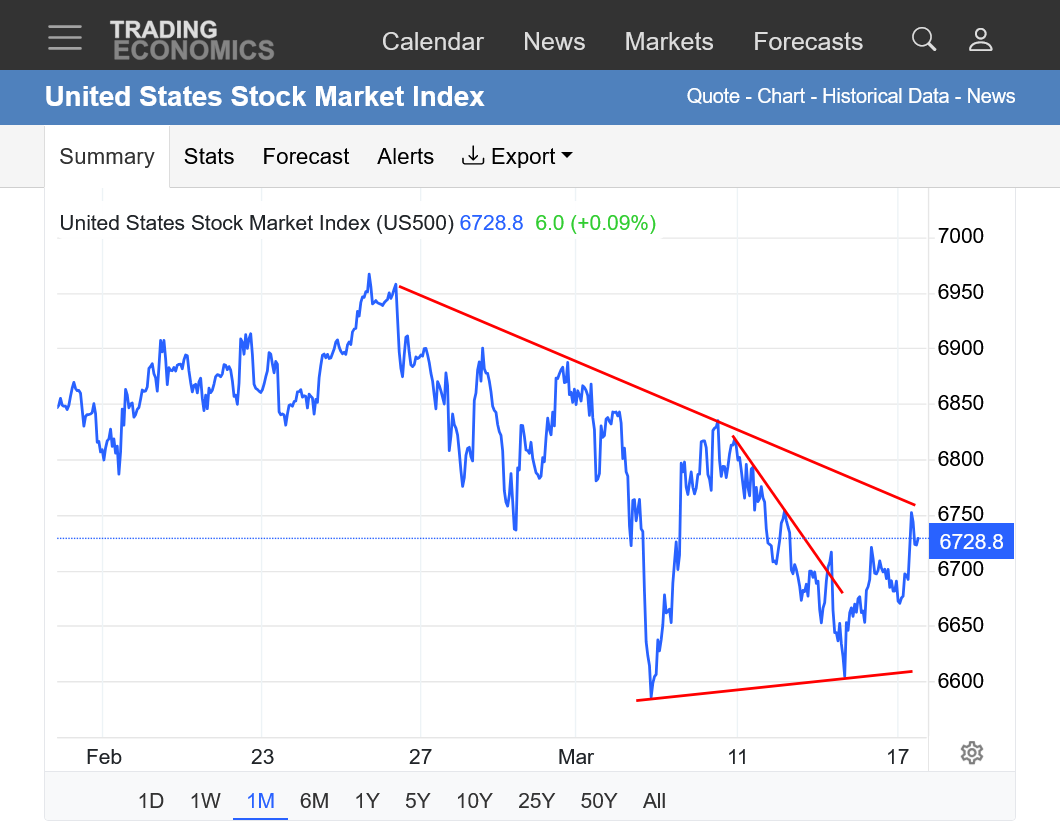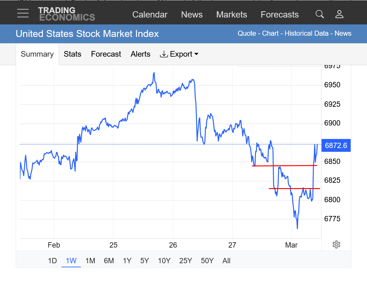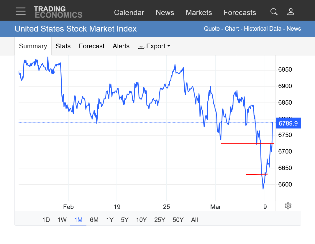 I think that the market knows that Donald Trumps top priority is the stock market and gasoline prices and he will cave on the war, after causing massive chaos. He will make up things about the greatest victory ever. How he won by a lot, even more and quicker than he planned and accomplished even more than he wanted to. And thanks to him, the world is safer and thanks to him energy prices will be the lowest ever.