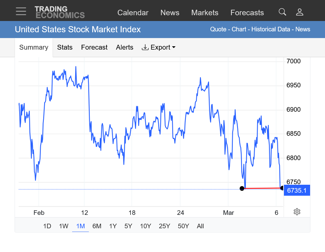 5pm: Actually we are in a realm of unintended consequences from this unprovoked war as Trump's jawboning to rally the market today was ineffective. He needs to end the war to really have a more lasting positive impact. I think this is likely because the stock market means everything to Donald Trump.