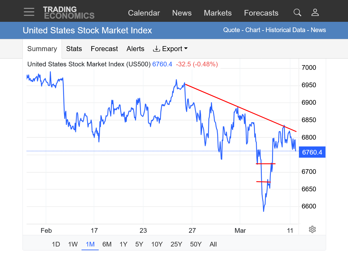It's all about the NEWS regarding the Trump/Netanyahu unprovoked war in Iran. It will end at some point and I strongly suspect the stock market will spike way up immediately after that.
