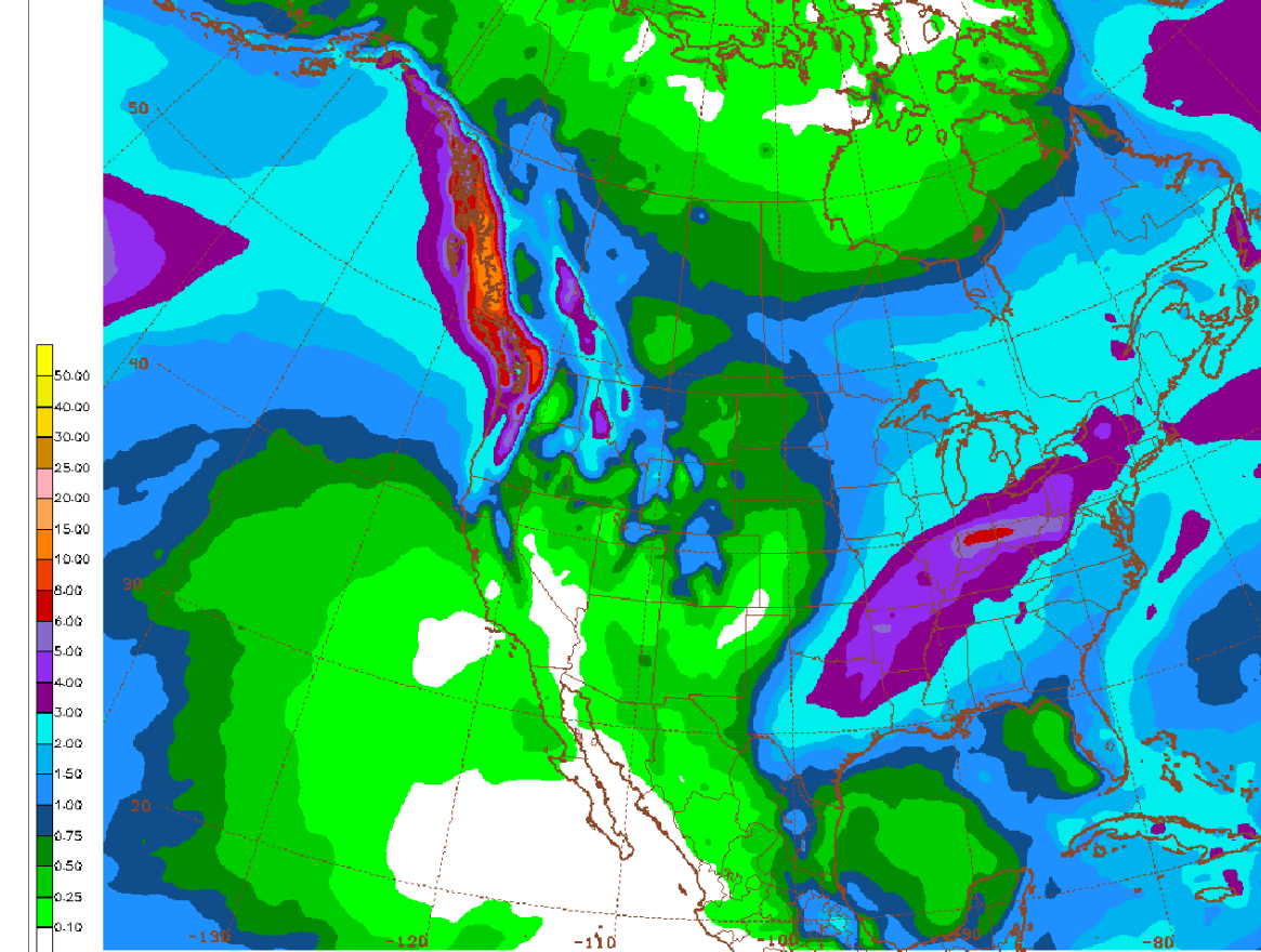 Total rains from the last 18z GEFS model for the next 16 days. The center band is 5+ inches.