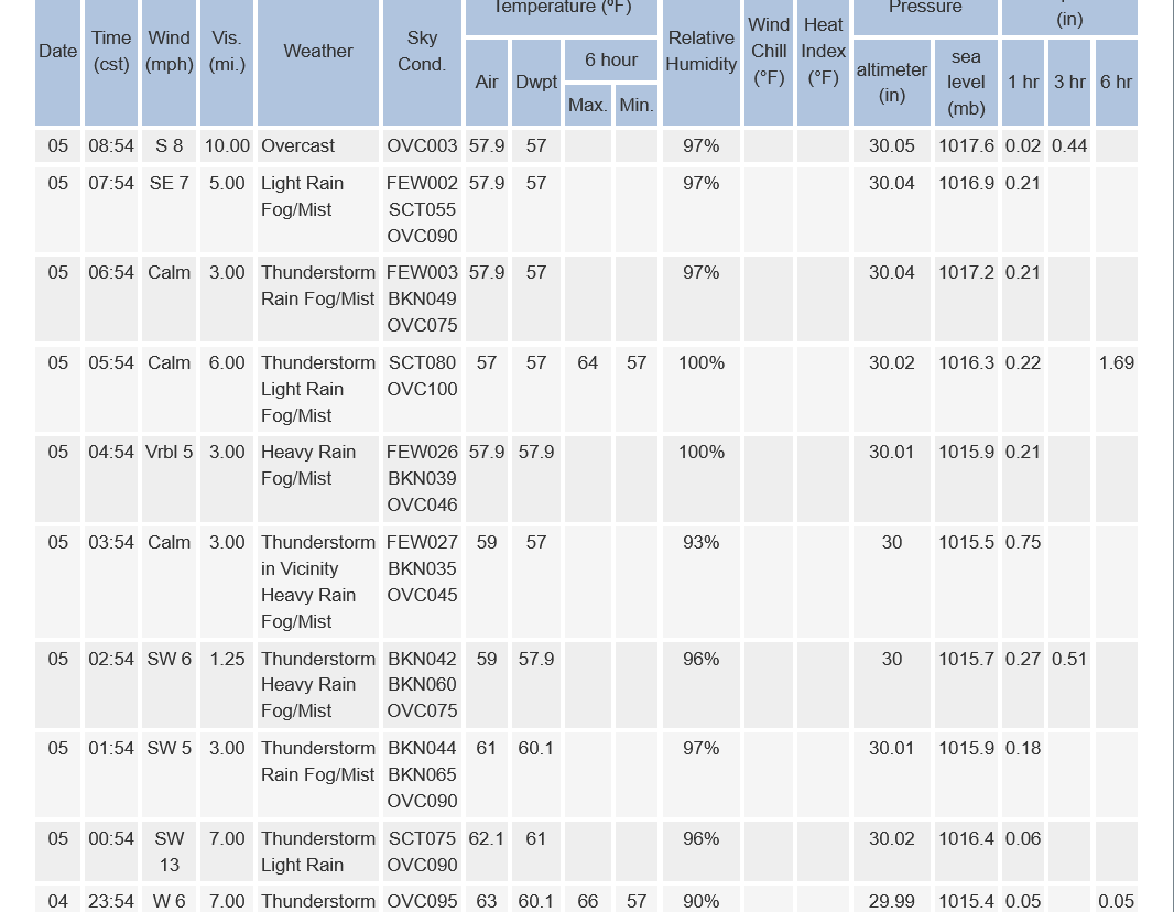 The exception was between 3-4am when .75 inches fell. THAT was heavy. Otherwise, the heaviest rains in an hour was .27.