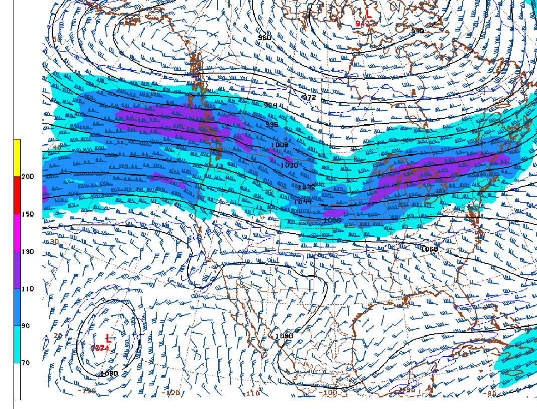 We're on the southern periphery of a moderately strong jet stream with the greatest dynamics from the more powerful, ZONAL jet streak in the center pretty far north of us.
