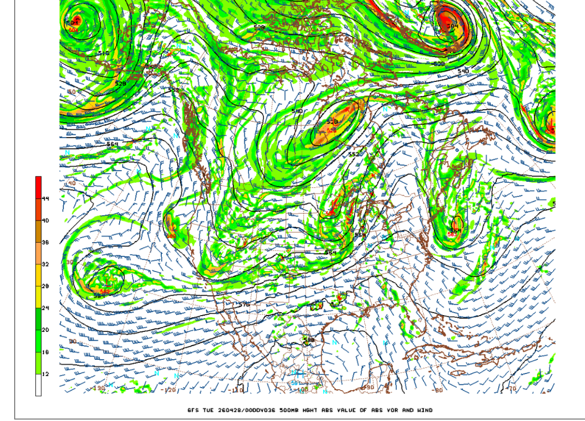 500 mb vorticity late Monday (18,000 feet=3+ miles up)