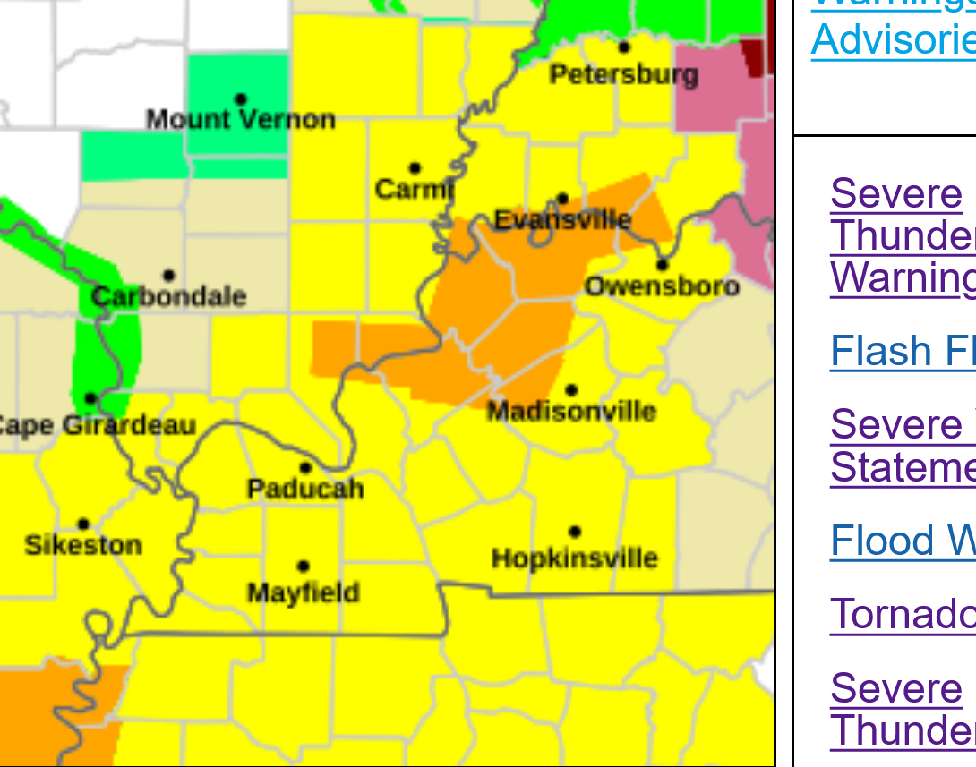 11:21pm: New warning with a couple of counties in KY now from storms moving away from Evansville.