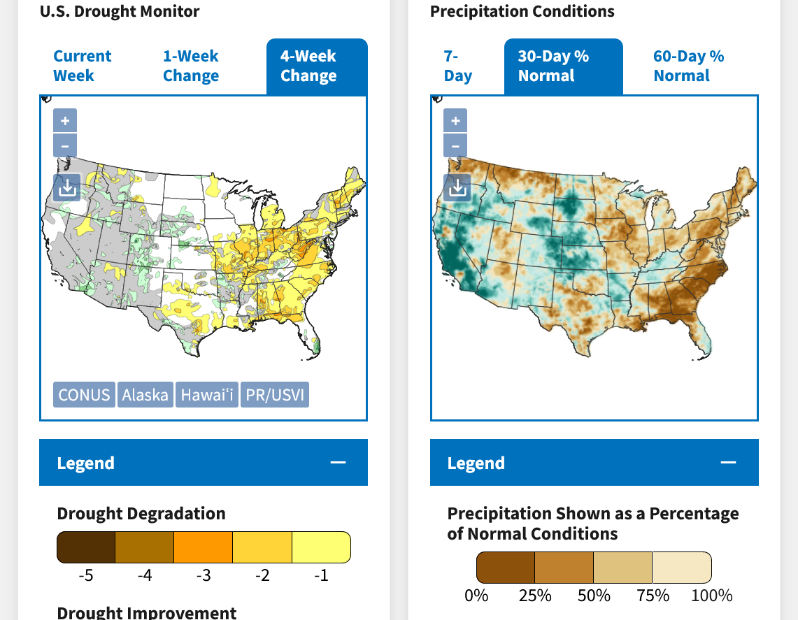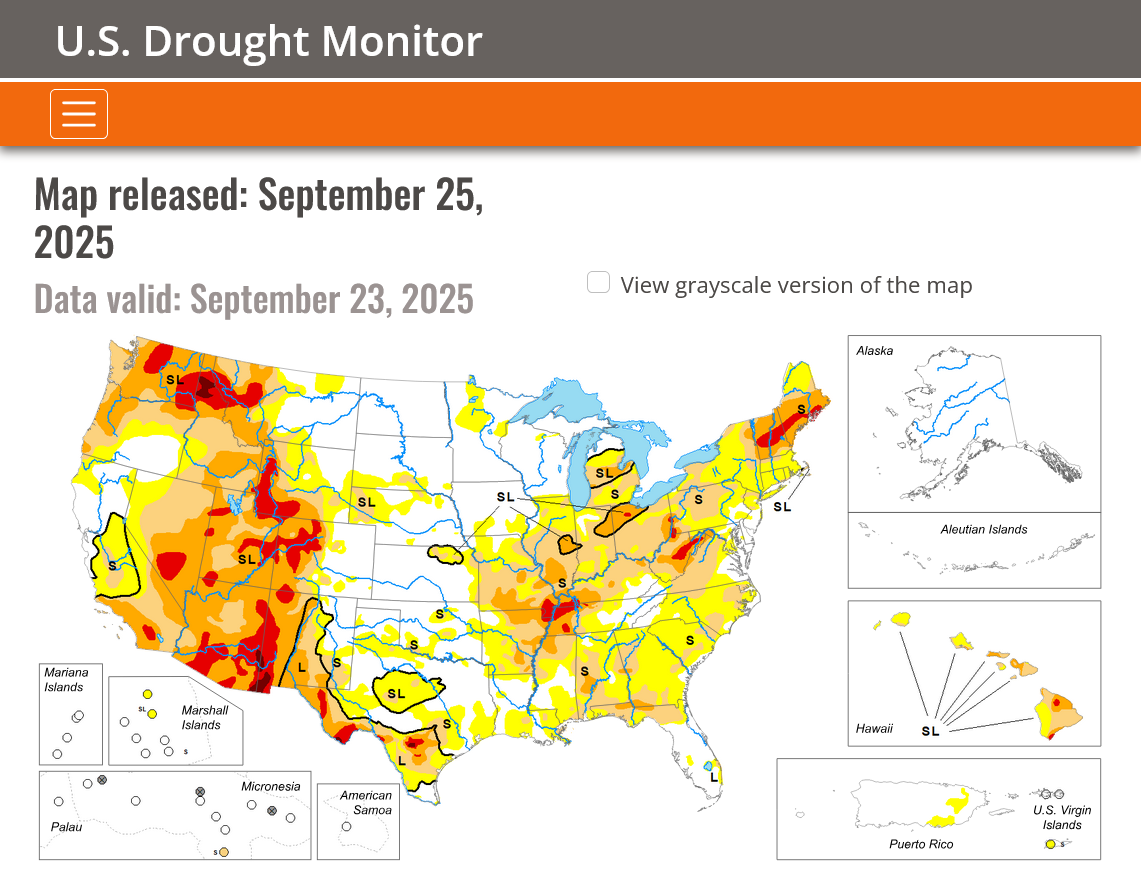Thru 8-31-25: FLASH DROUGHT in the driest areas!!! This IS reducing yields ab it, especially for beans that are still filling pods and are impacted by soil moisture.
