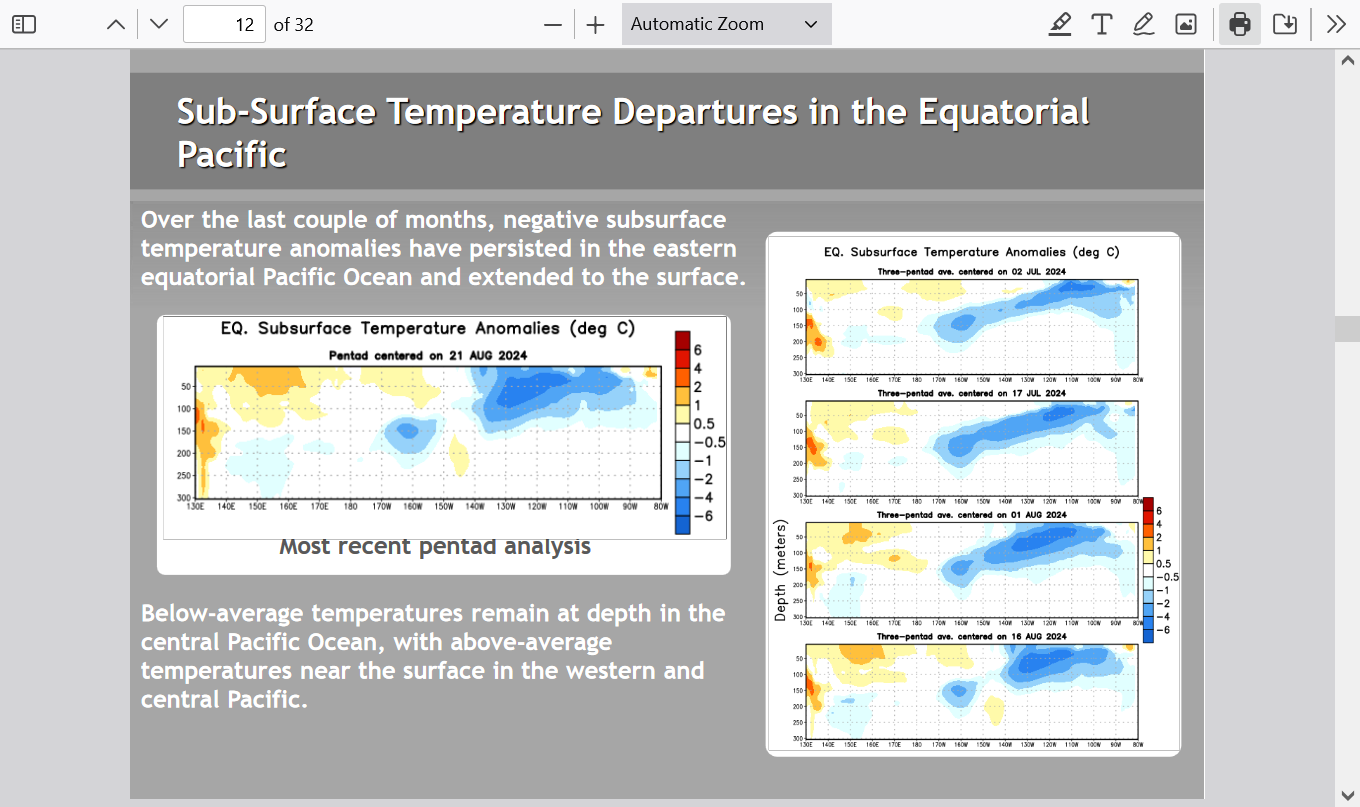 The current cool water temp anomalies are right on the threshold for NOAA. The ocean/atmosphere crossed that threshold months ago when it started cooling.