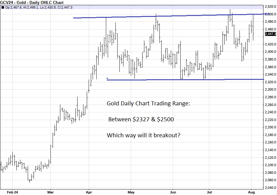 We've tested 2525, 5 times now in the last month and its been a brick wall but the fact that we keep coming back up to test it again, tells us that there's still plenty of underlying support after we fail to break thru and drop off a bit. History suggests that many tests mean its just a matter of time before we get ABOVE 2525 but it could just as easily be the final wall that gold can't climb over. With a parabolic, unsustainable move higher like this, the end often features extreme volatility and wild price spikes. Gold is incredibly quiet at these record high prices.