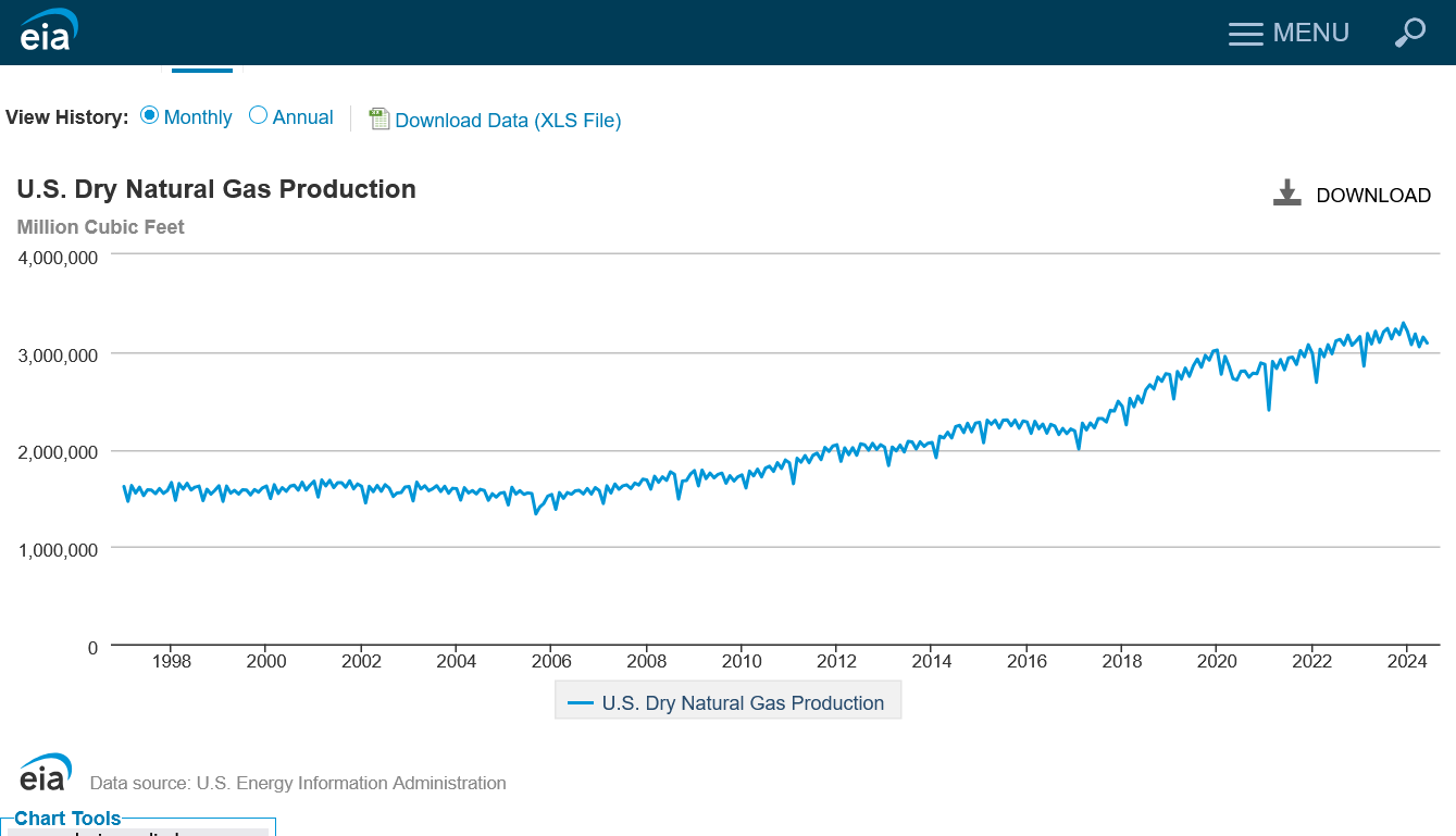 Same thing with them pumping out massive, record amounts of natural gas during this administration which is PART of the reason for why we have the lowest September natural gas price in almost 30 years.