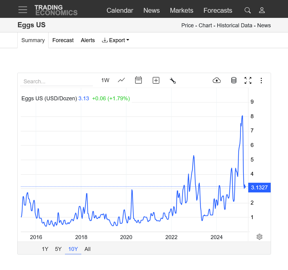 At least as of 4 days ago, our grocery stores were still charging $5+ per dozen!