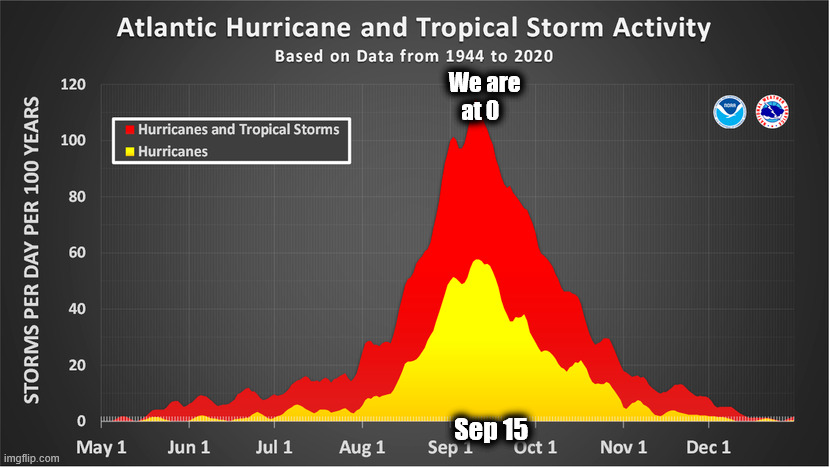 Just to review the seasonal/historical average again below and where we are right now to demonstrate how unusual this year has been with 0 tropical systems so far this month.